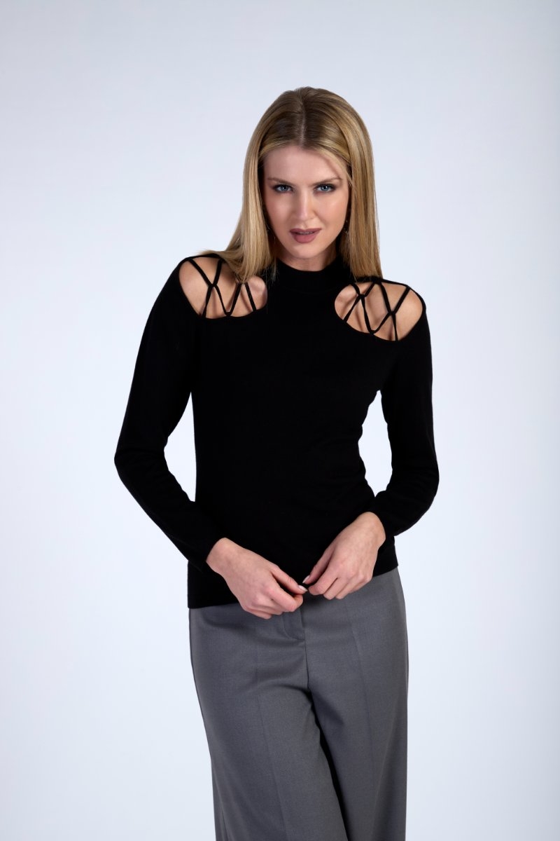 MAGLIA SCOLLO A V CON BOTTONCINI E TASCHINO LOGATO