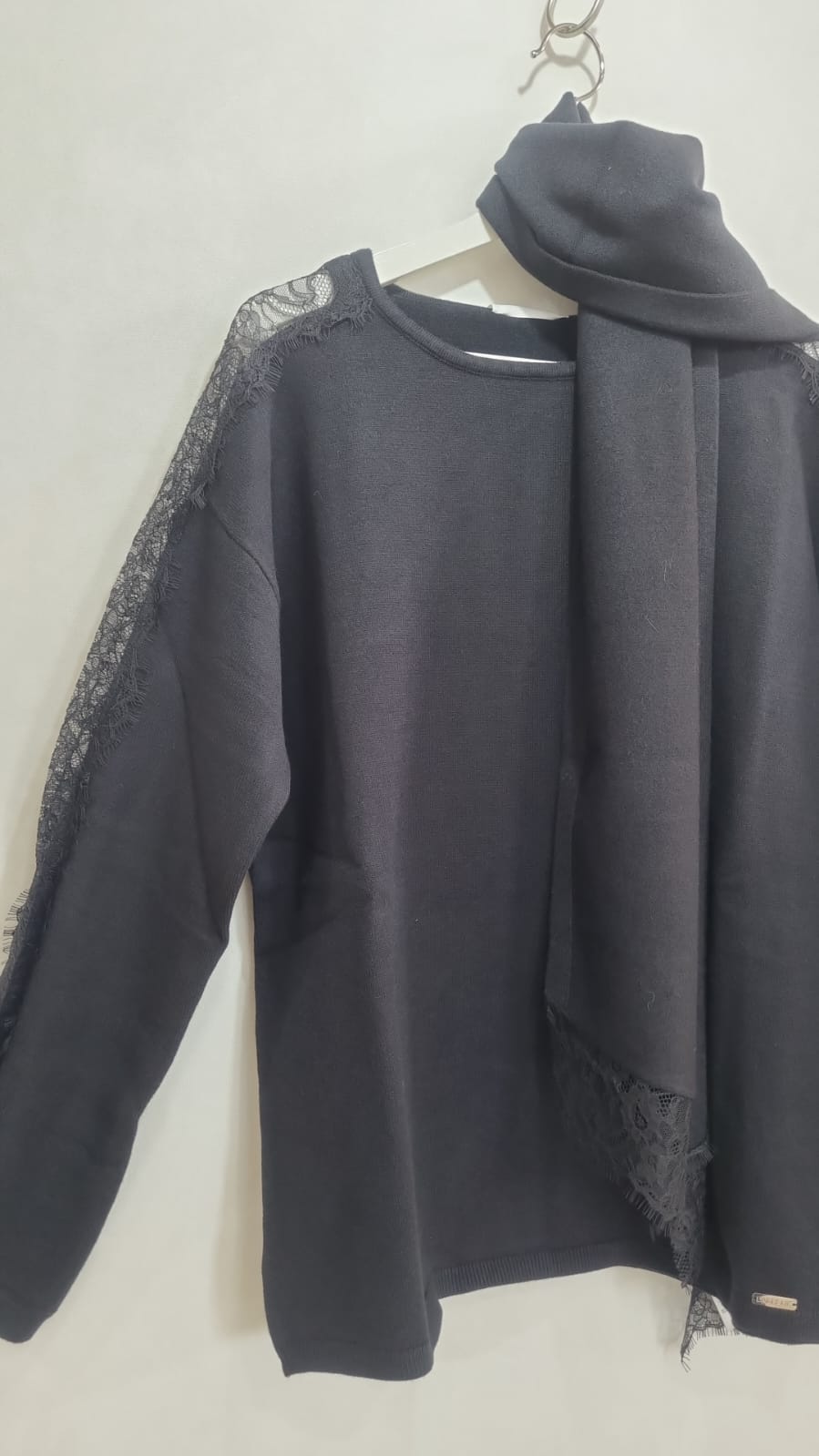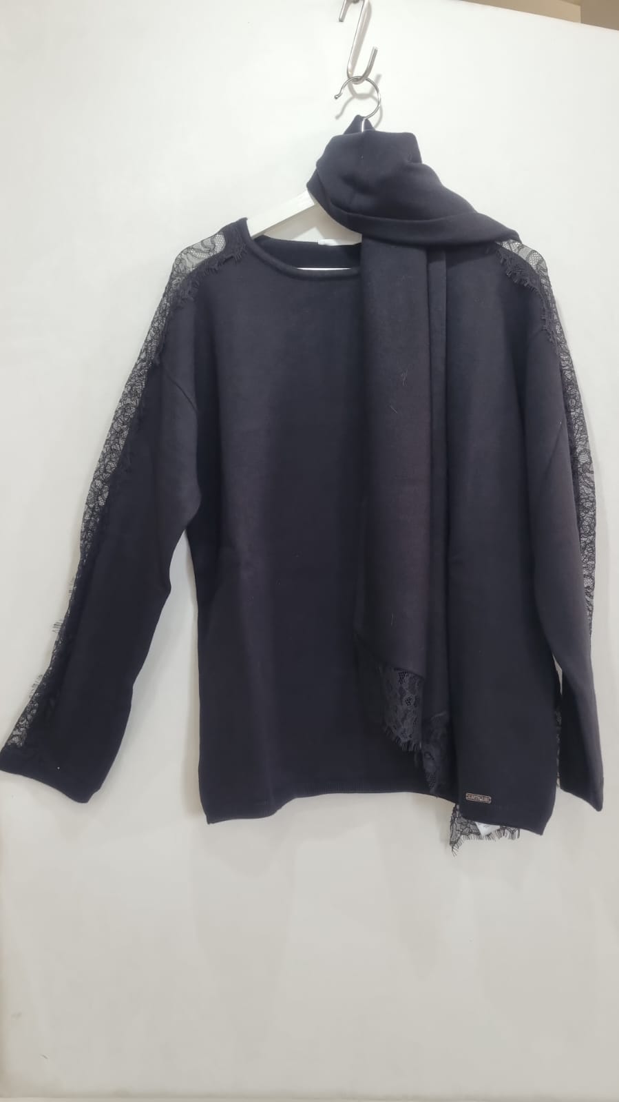 MAGLIA CON PIZZO A CONTRASTO E SCIARPINA ABBINATA