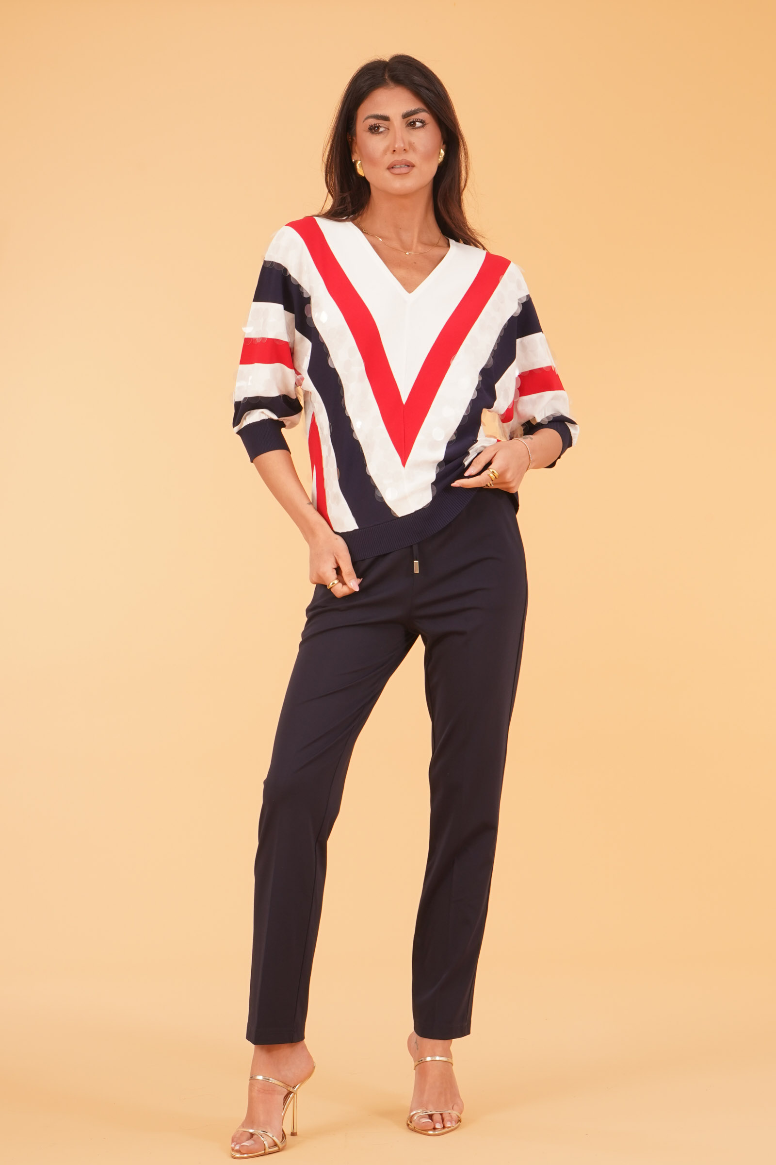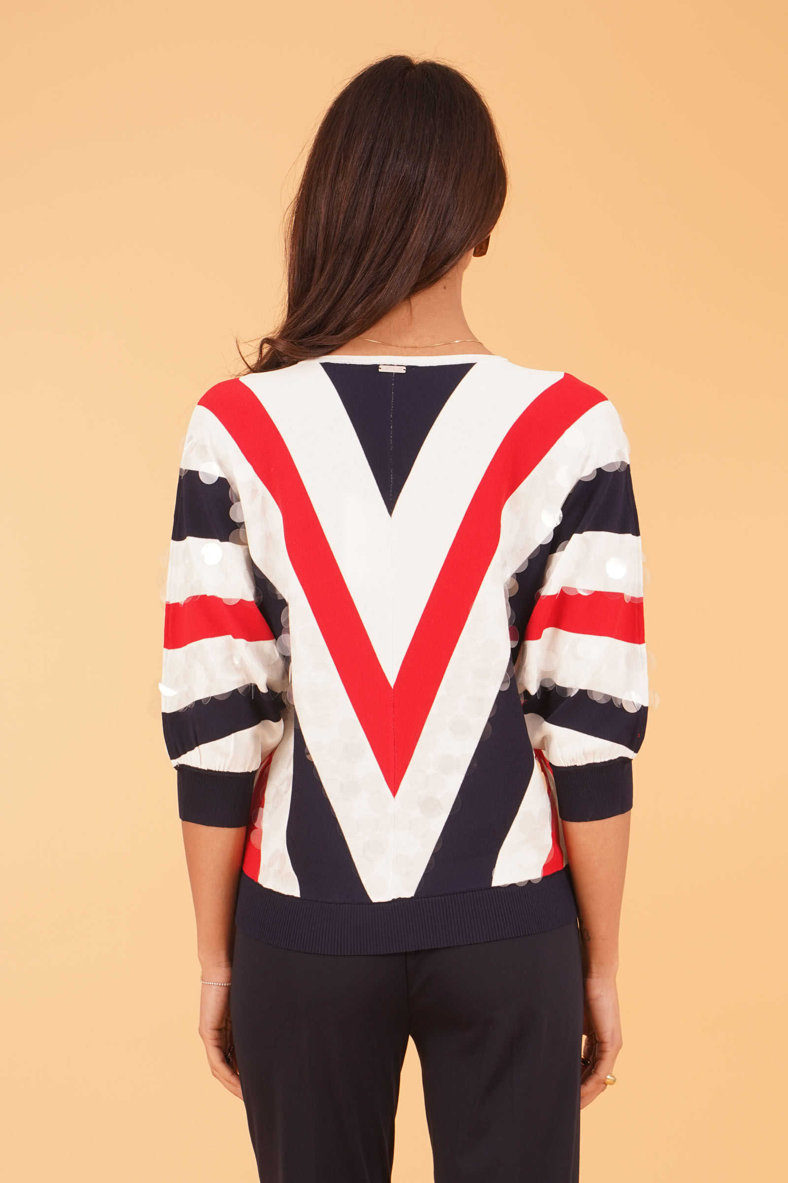 MAGLIA SCOLLO A V TRICOLORE CON PAILLETTES TRASPARENTI