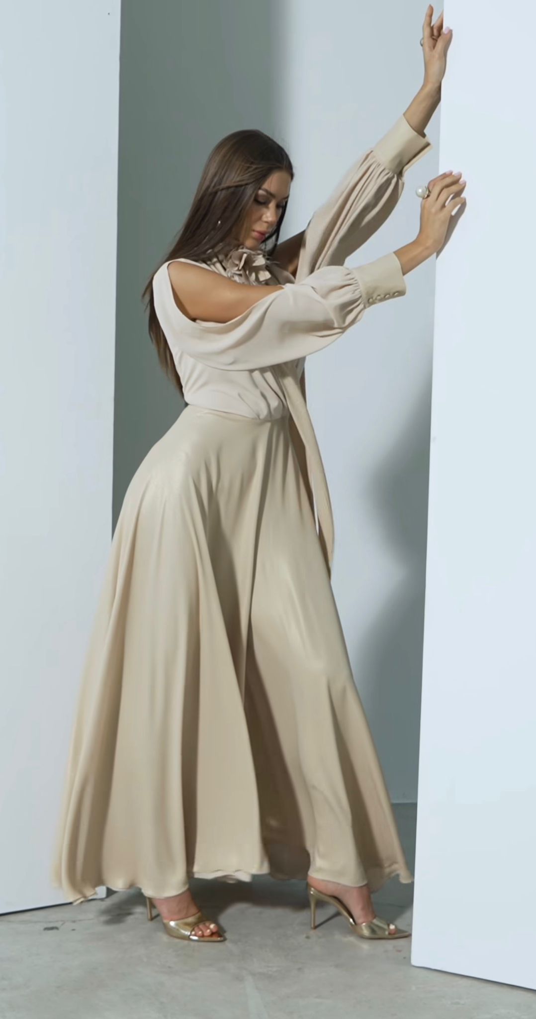 TUTA IN CREPE SCOLLO A V INCROCIATO MANICHE LUNGHE APERTE