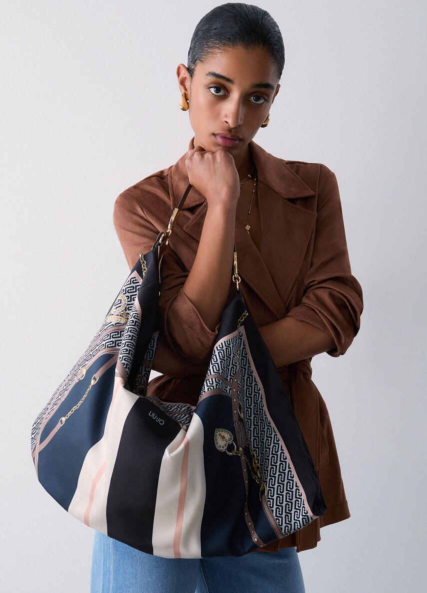 BORSA A SACCA IN RASO STAMPA DENIM
