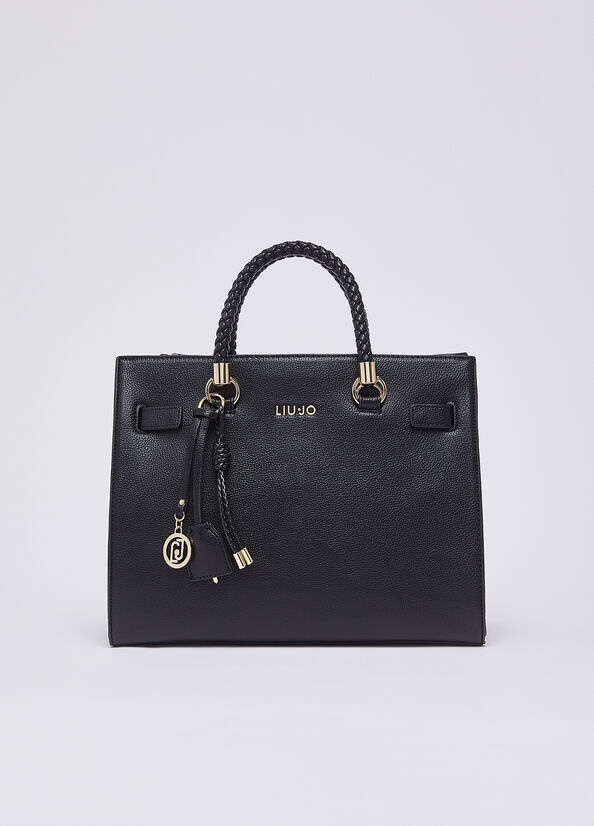 BORSA SATCHEL MEDIA MANICI INTRECCIATI E TRACOLLA CON CHARM