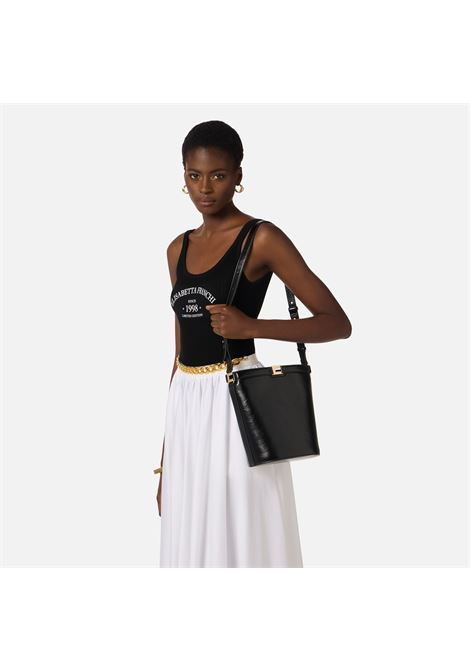 Misure: 31 x 17 x 26 cmModello satchelEffetto bottalatoFodera interna logataDue scoparti chiusi con zipScomparto centrale chiuso con bottone magneticoManici intrecciatiCharm in tono coloreTracolla removibile