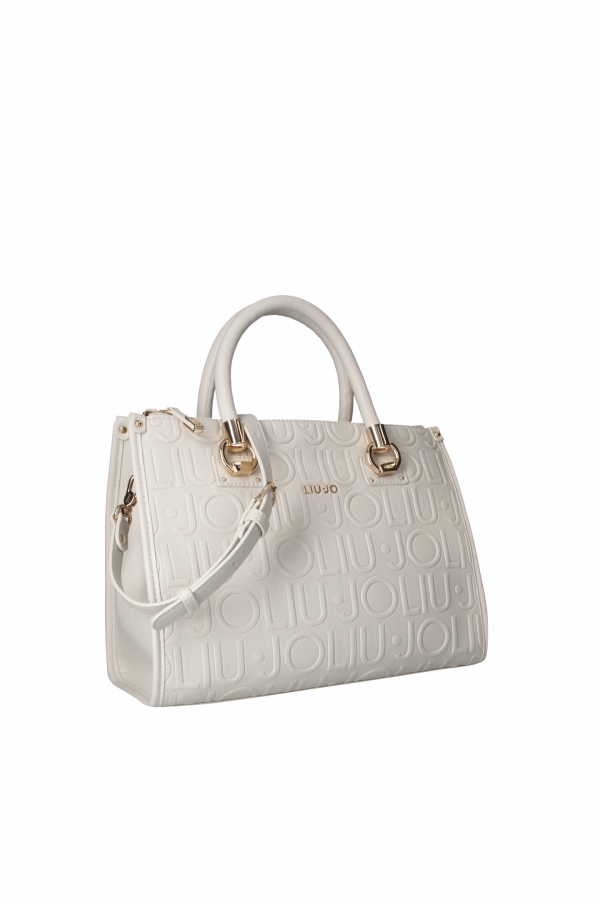 BORSA SHOPPING MEDIA LOGO IN RILIEVO CON MANICI E TRACOLLA