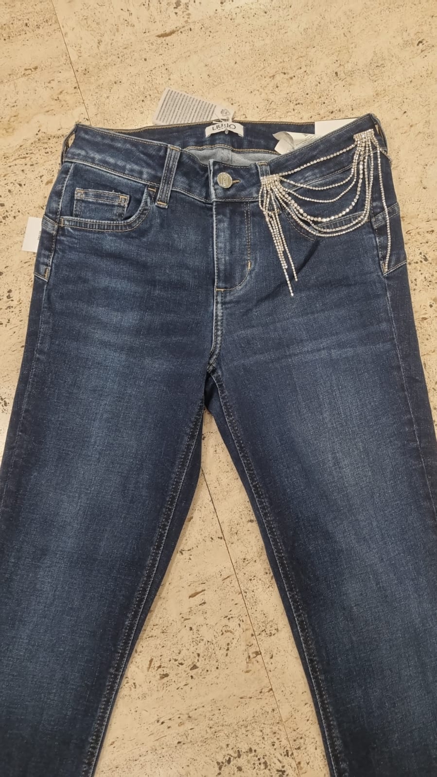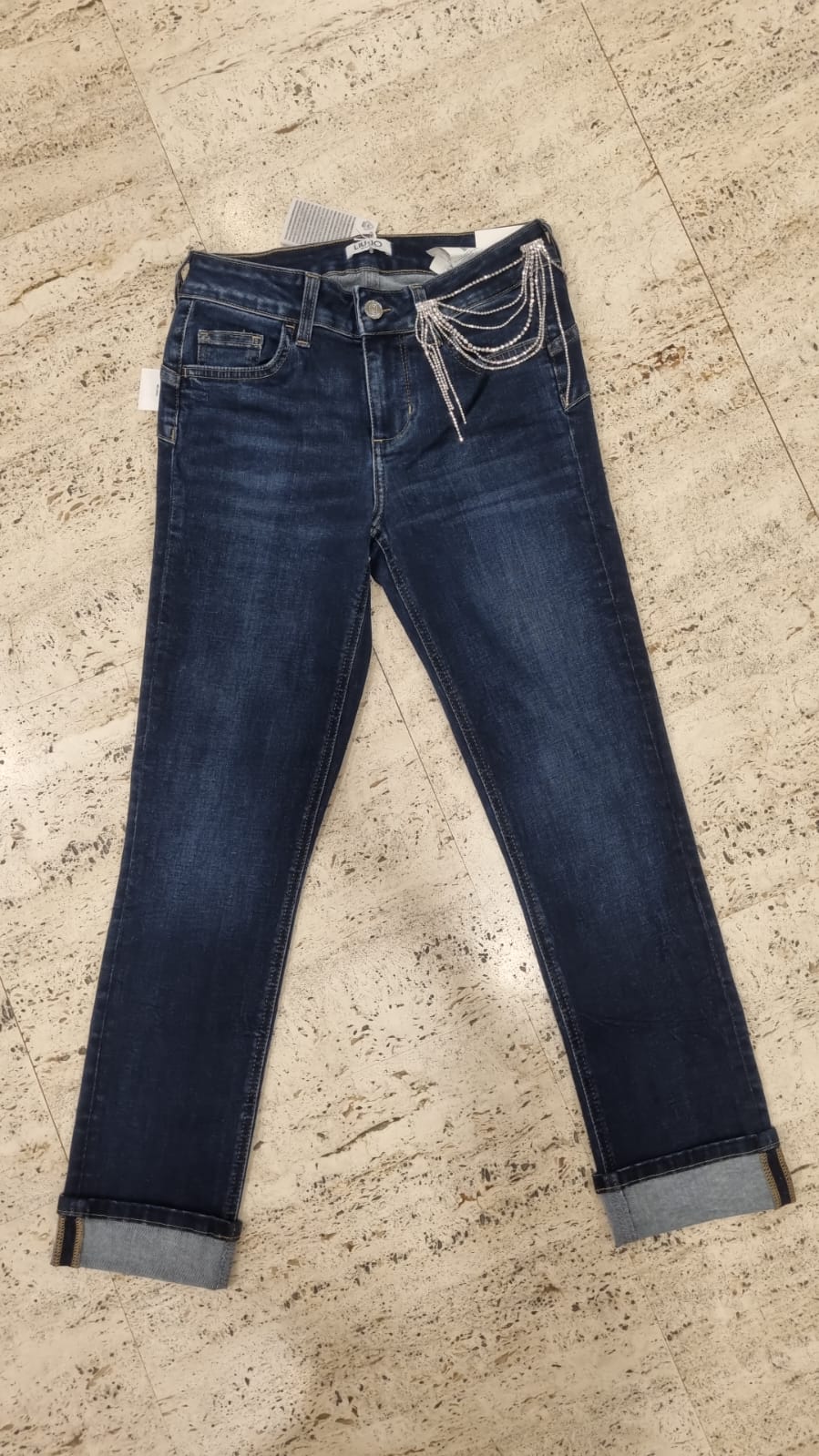 JEANS SIGARETTA ELASTICIZZATO CON ACCESSORIO STRASS