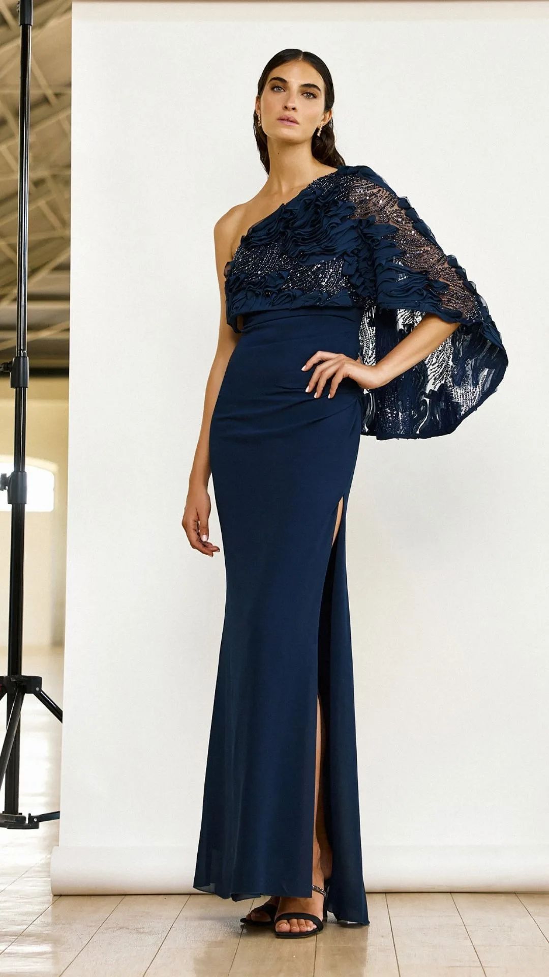 ABITO LUNGO MONOSPALLA MANICA AMPIA RICAMATA