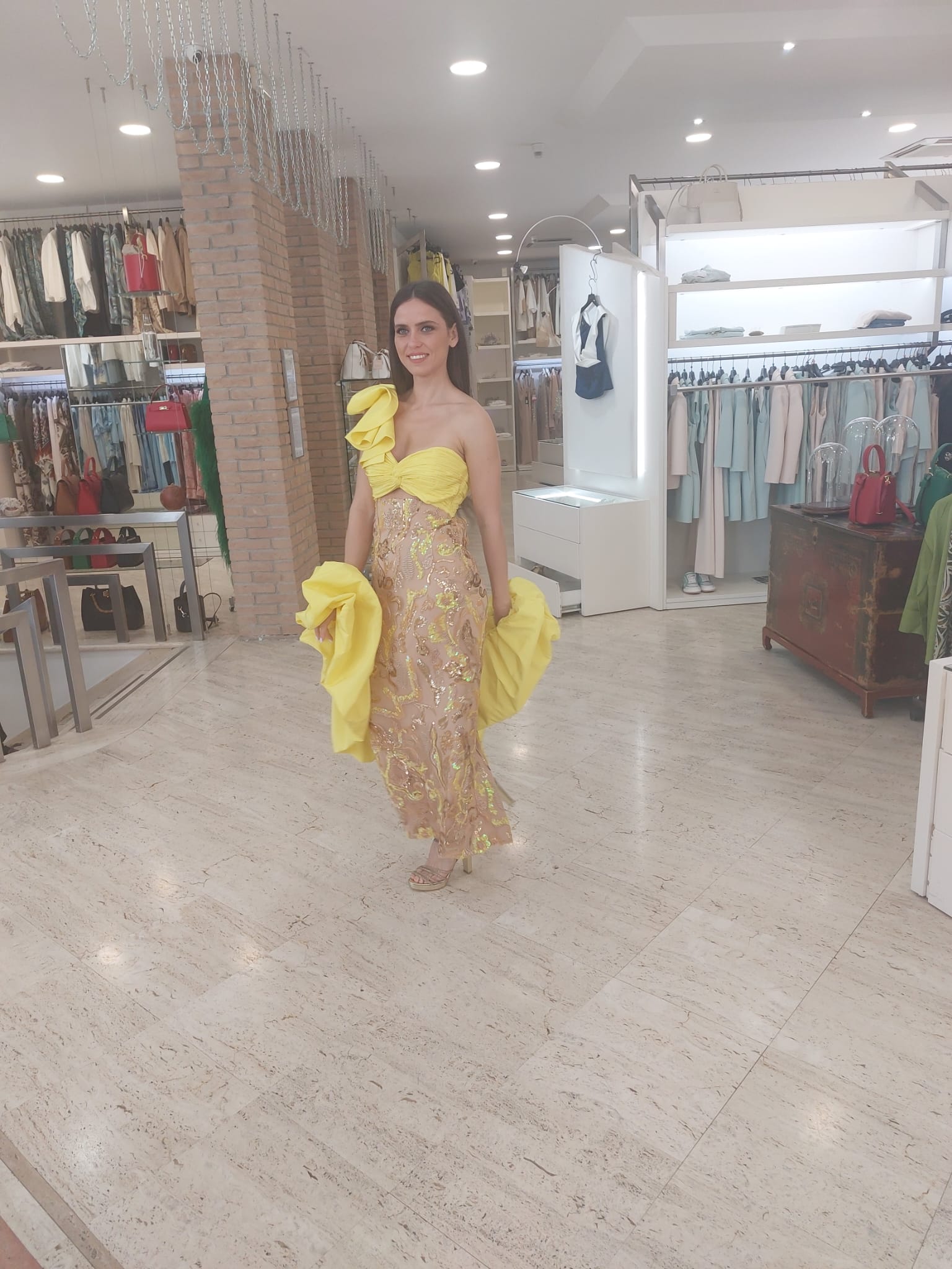 ABITO MONOSPALLA CON ROUCHES E PAILLETTES