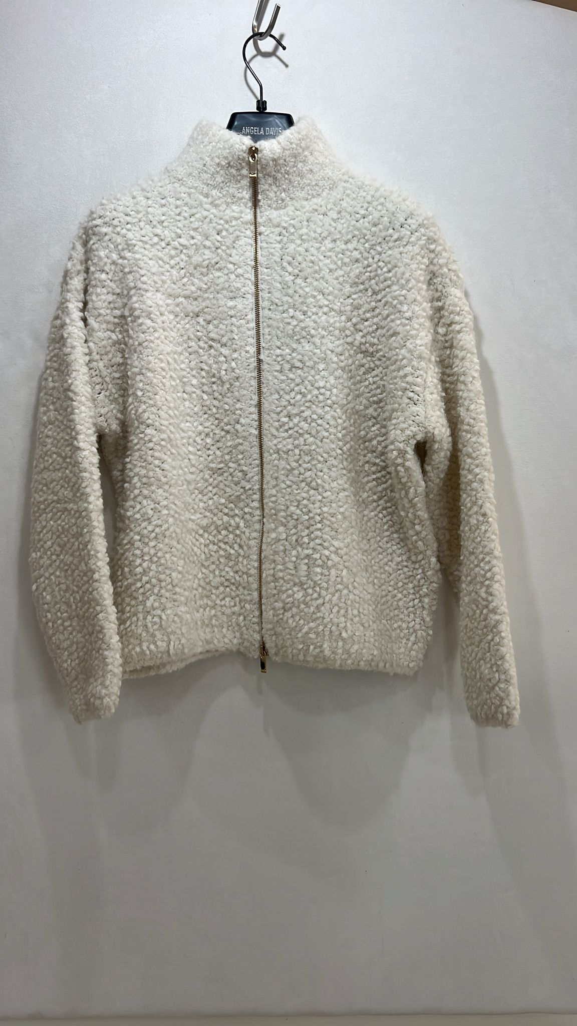 CARDIGAN GROSSO CON FIORI IN RILIEVO E STRASS
