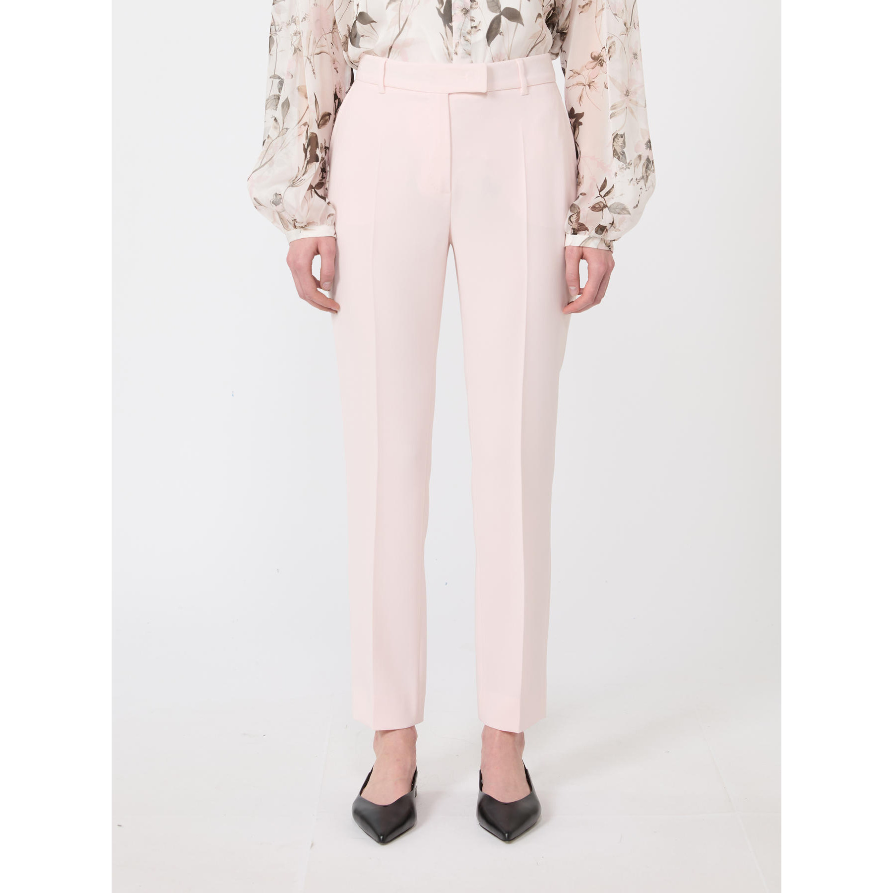 PANTALONE VITA ALTA IN DOPPIO CREPE STRETCH CON DETTAGLI LINGERIE E LOGO ORO