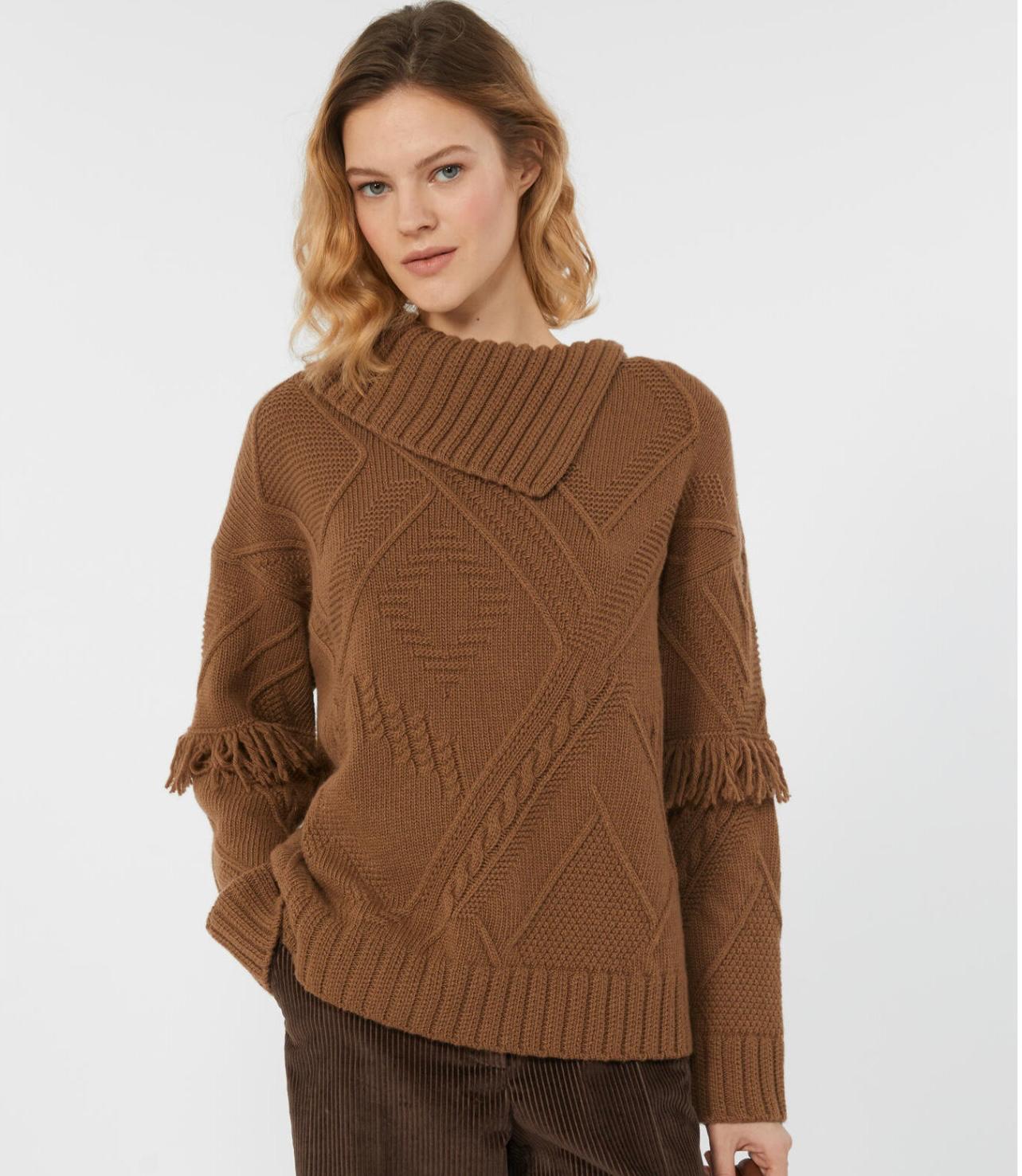 MAGLIA I CON COLLO ASIMMETRICO LAVORAZIONE A ROMBI E FRANGE
