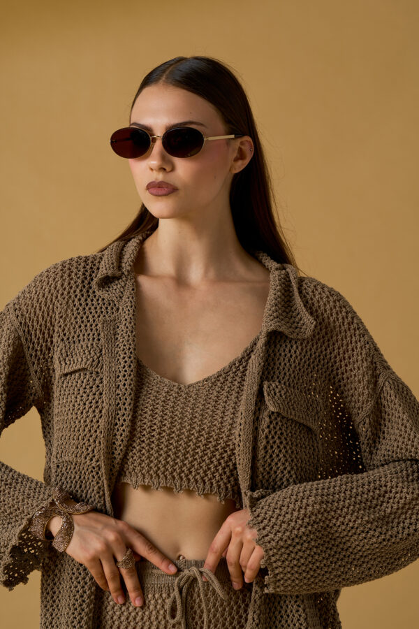 CARDIGAN GIROCOLLO A COSTINE CON BOTTONI GOLD