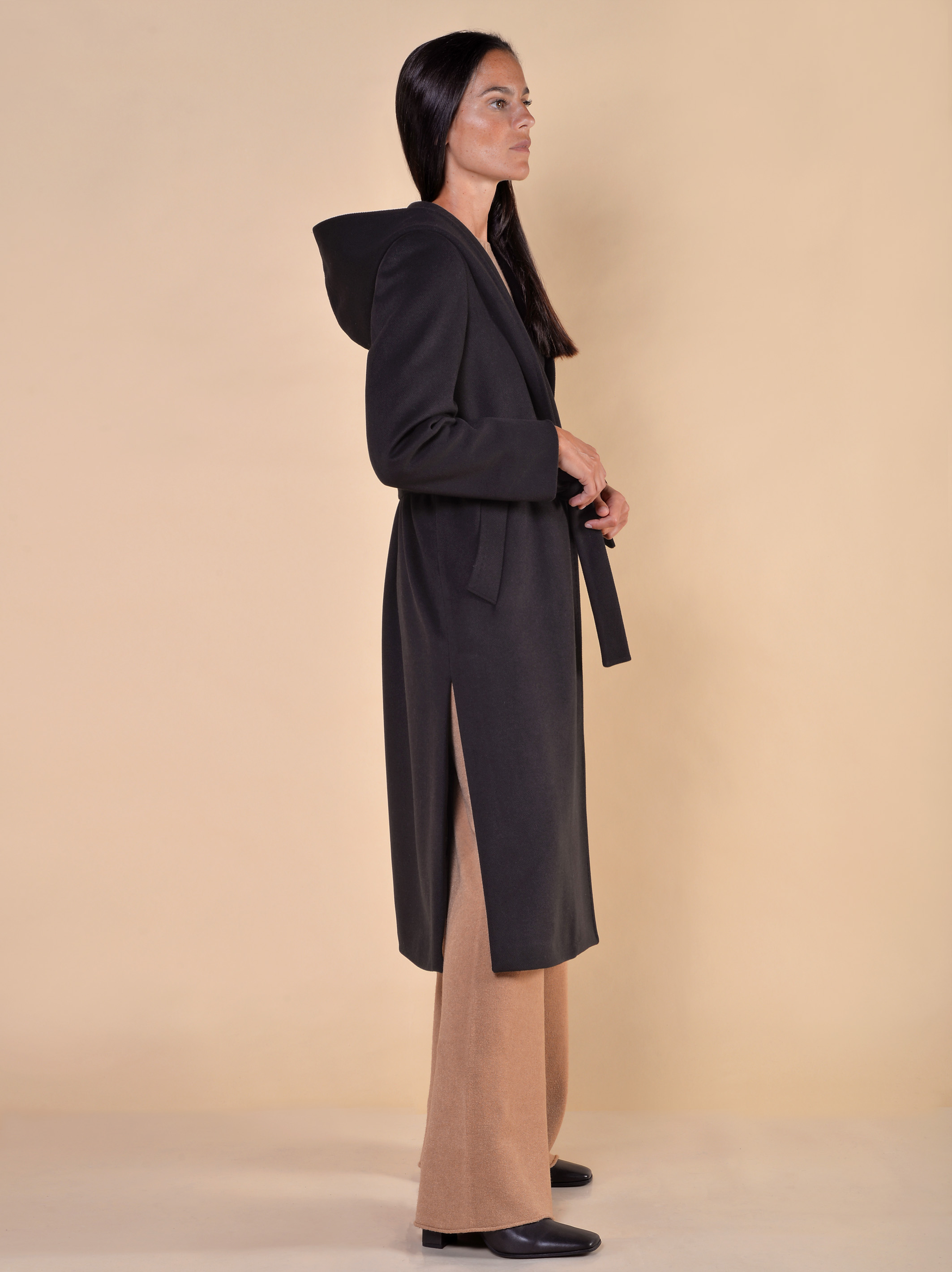 CAPPOTTO CON CAPPUCCIO FUSCIACCA E SPACCHI ALTI