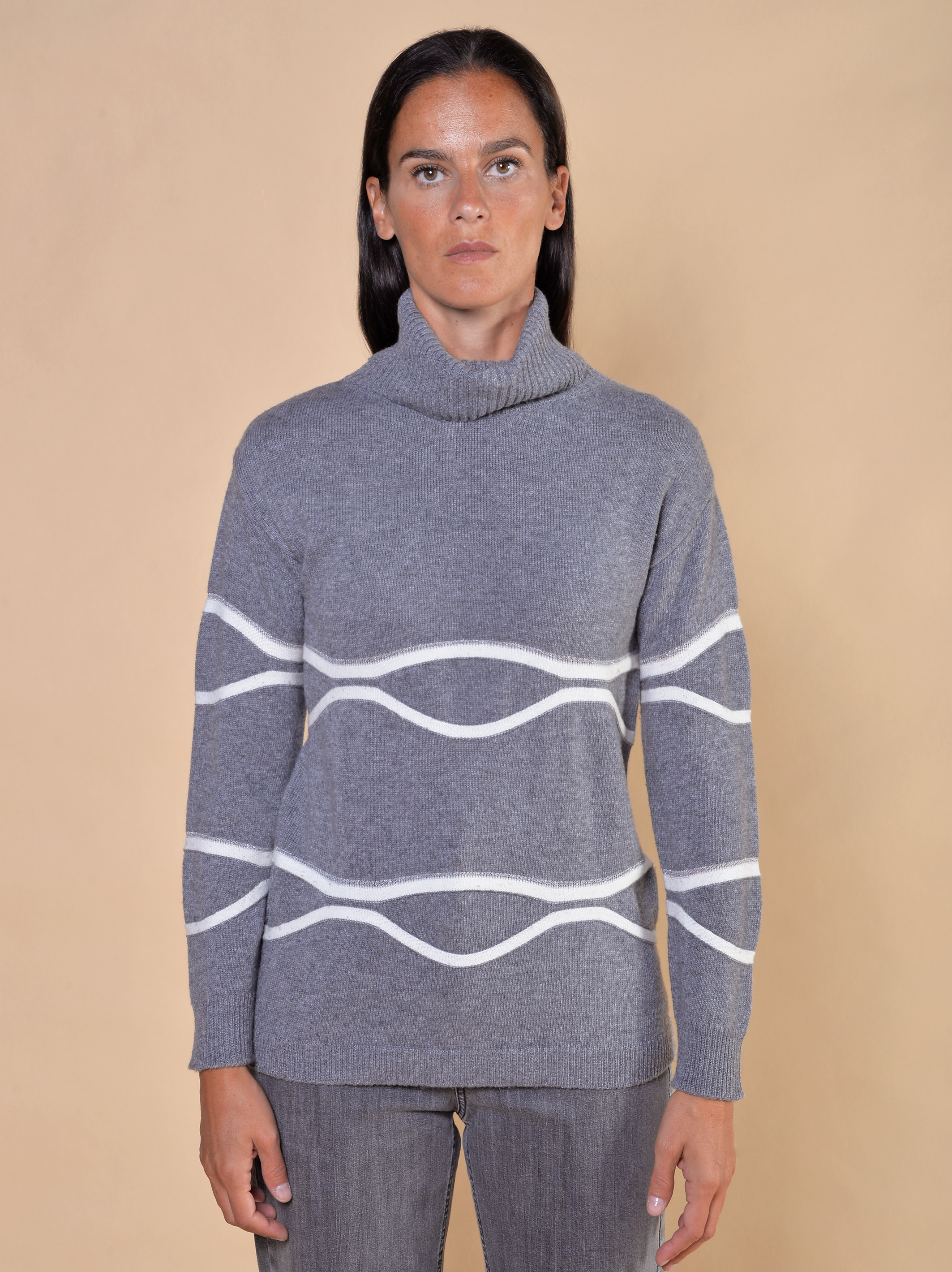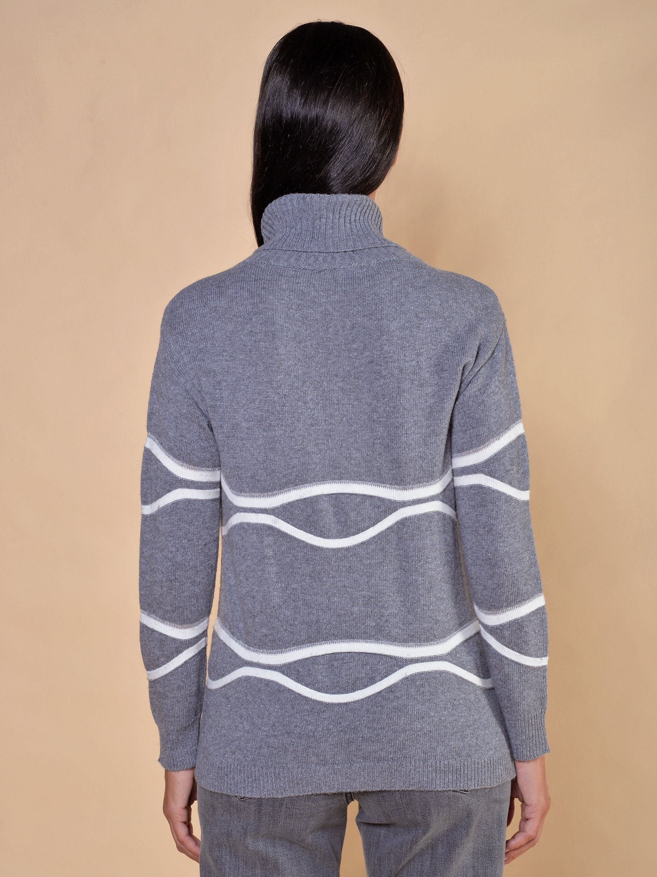 MAGLIA DOLCEVITA DISEGNO A ONDA A CONTRASTO