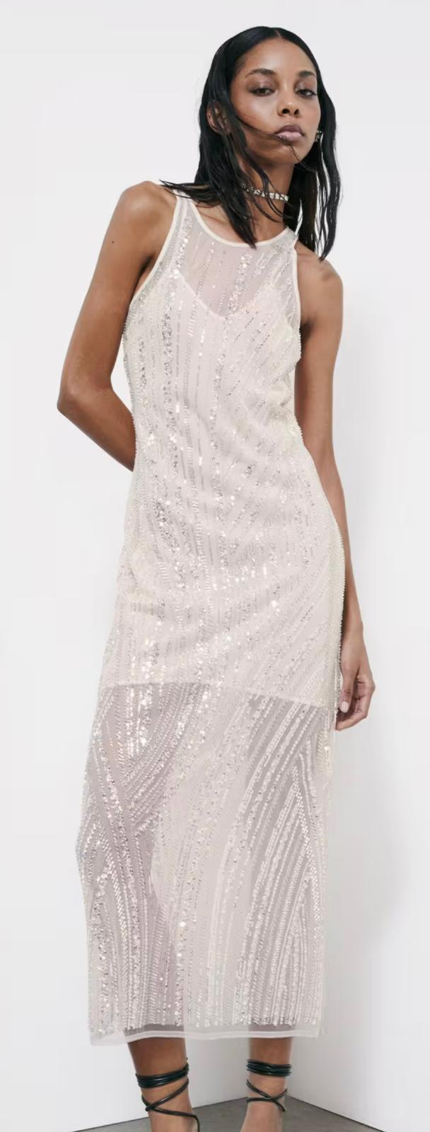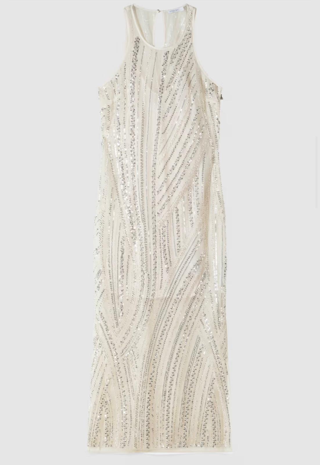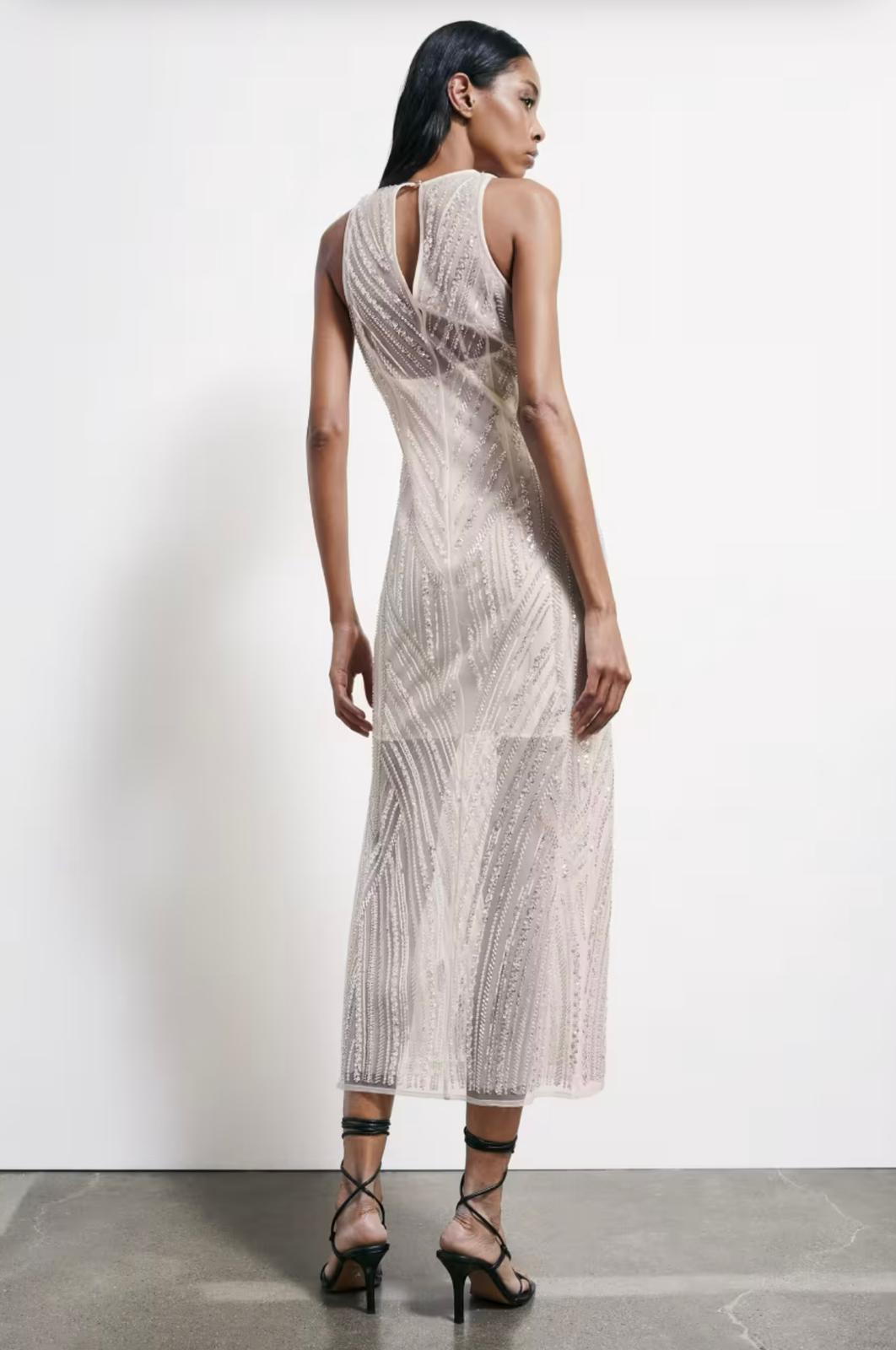 ABITO MIDI RICAMATA CON PAILLETTES E PERLINE
