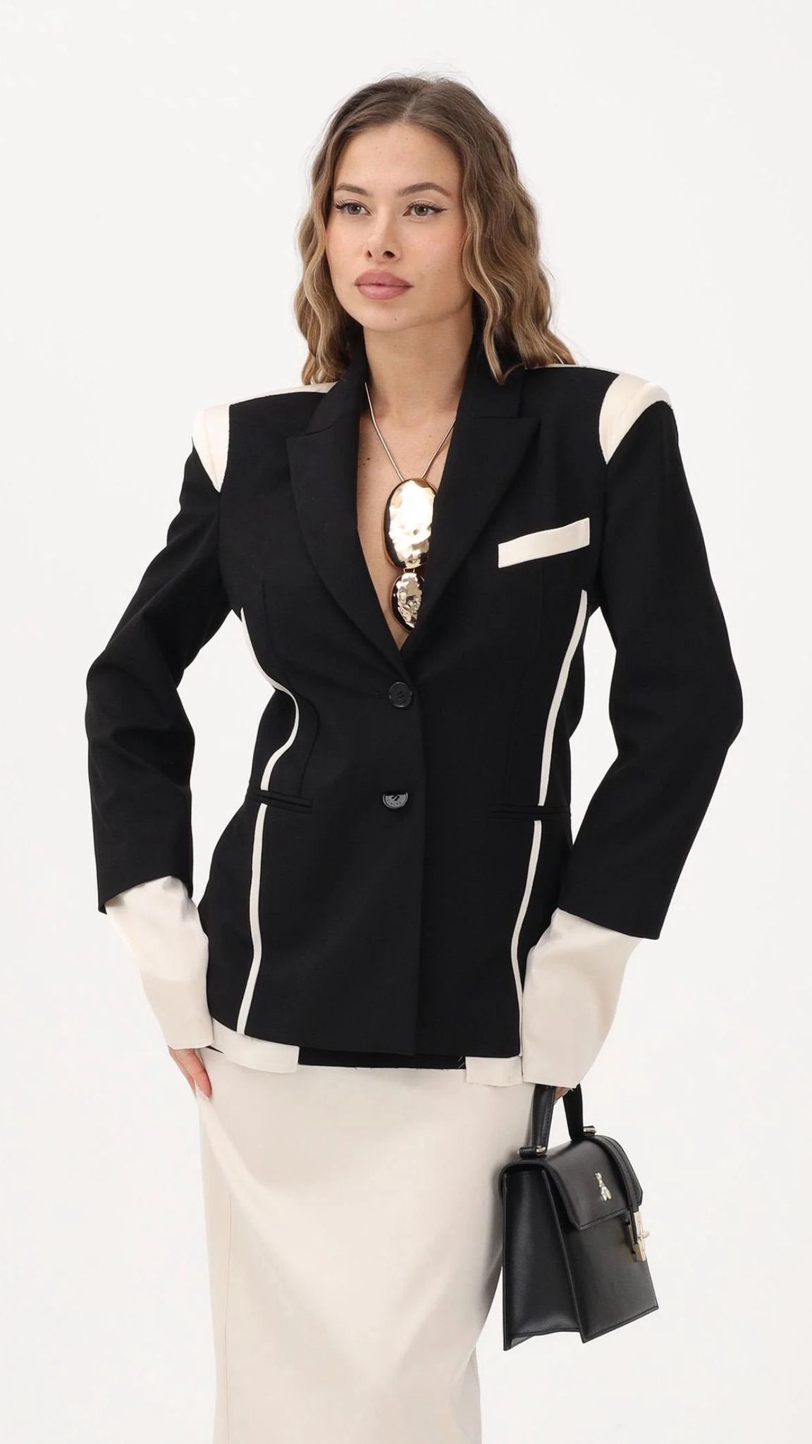 GIACCA BICOLORE CON INSERTI IN RASO LUCIDO