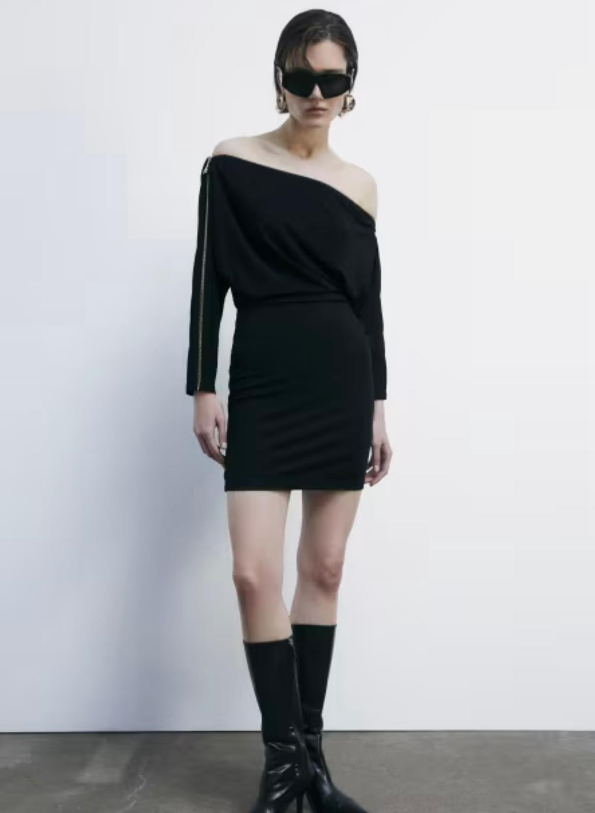 MINI ABITO IN JERSEY STRETCH SCOLLO A BARCA CON DETTAGLIO ZIP
