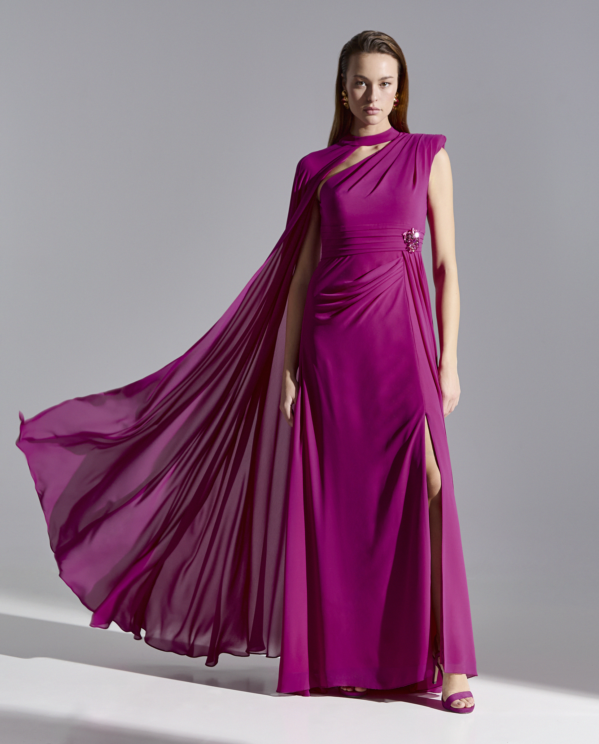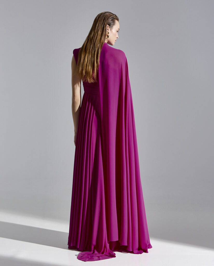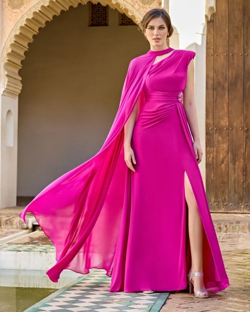 ABITO LUNGO GIOIELLO IN VITA COLLARINO CON FUSCIACCA LUNGA