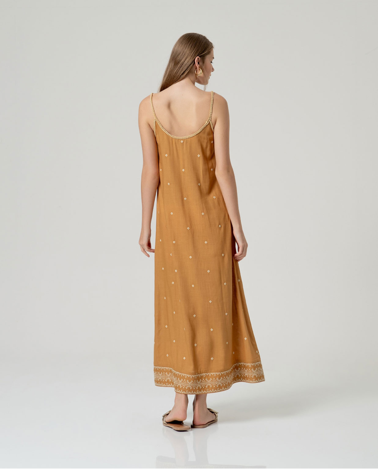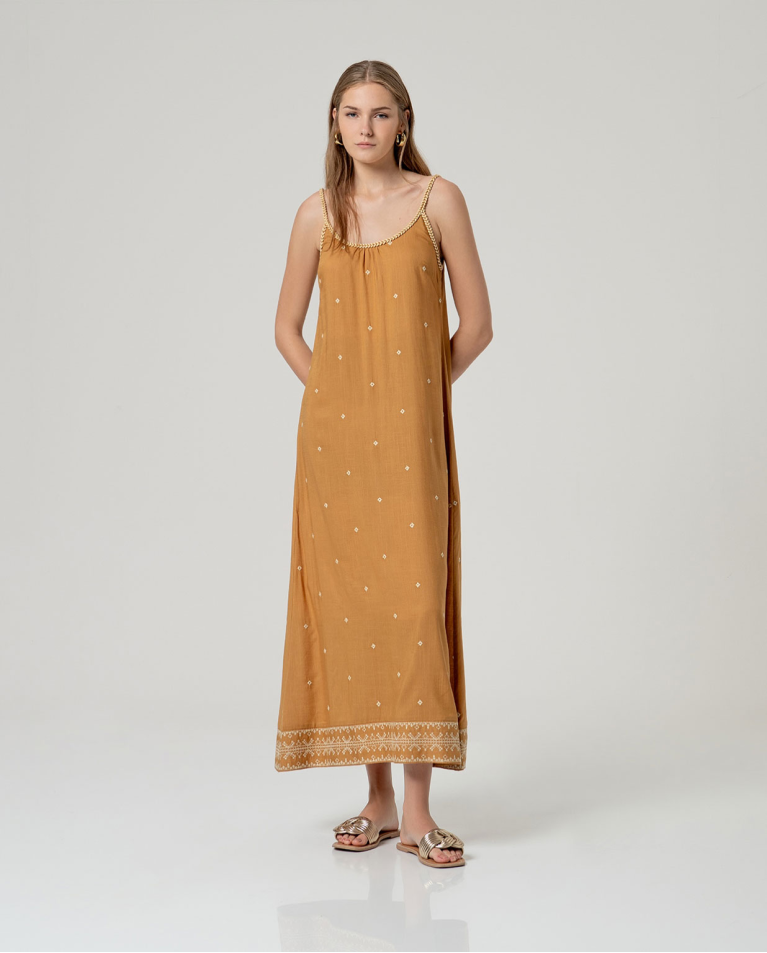 ABITO LUNGO IN JERSEY CON PROFONDO SCOLLO A V ARRICHITO DA LOGO GIOIELLO E SPACCO CENTRALE
