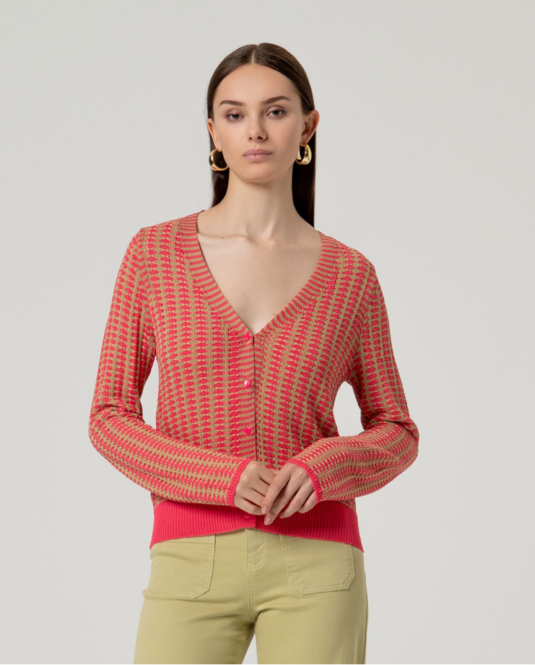 CARDIGAN SCOLLO A V BICOLORE