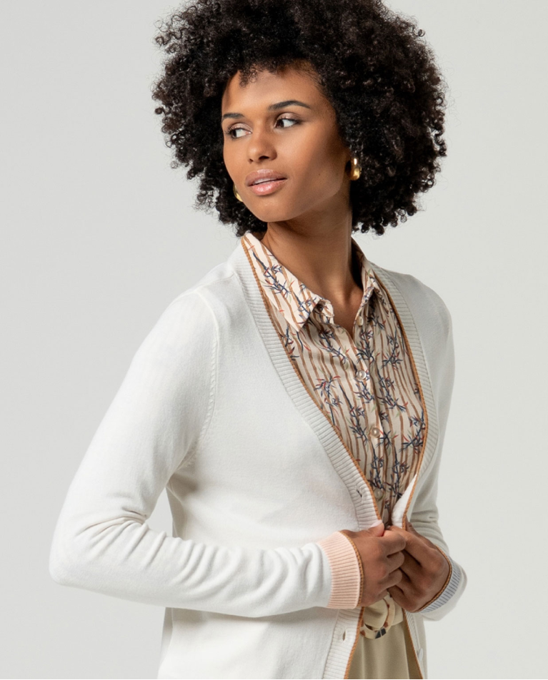 CARDIGAN SCOLLO A V BOTTONCINI BORDINO A CONTRASTO
