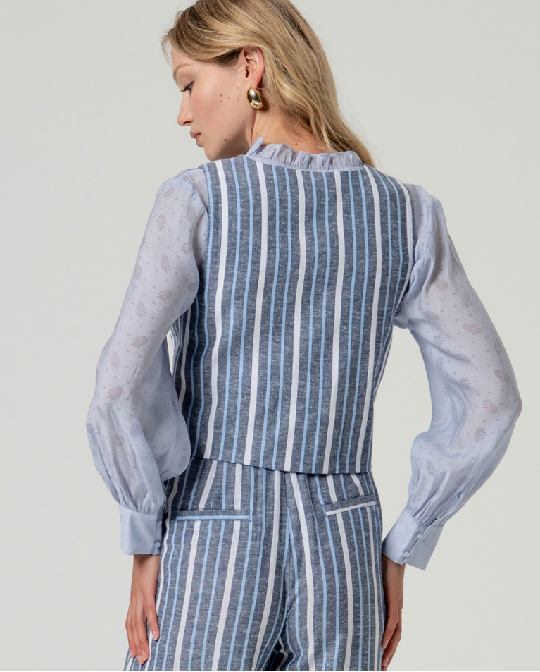 GILET CORTO RGHE IN LINO E COTONE