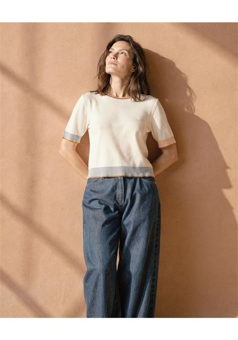 MAGLIA BICOLORE SCOLLO A BARCA MEZZA MANICA