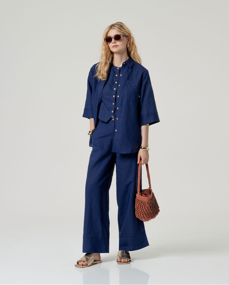 PANTALONE AMPIO ALLA CAVIGLIA IN LINO
