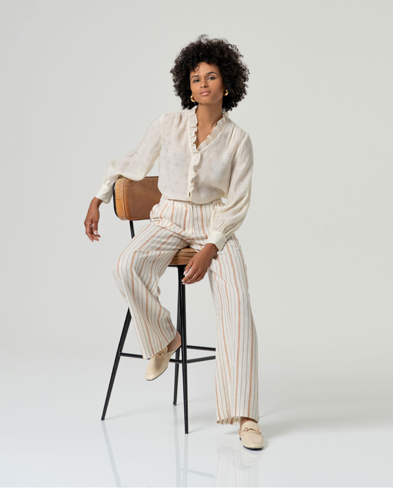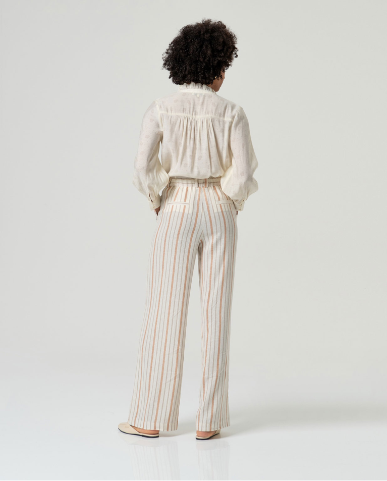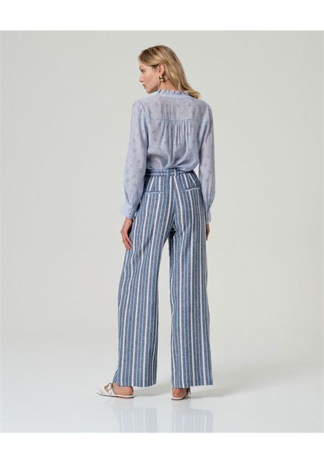PANTALONE PALAZZO A RIGHE IN LINO E COTONE