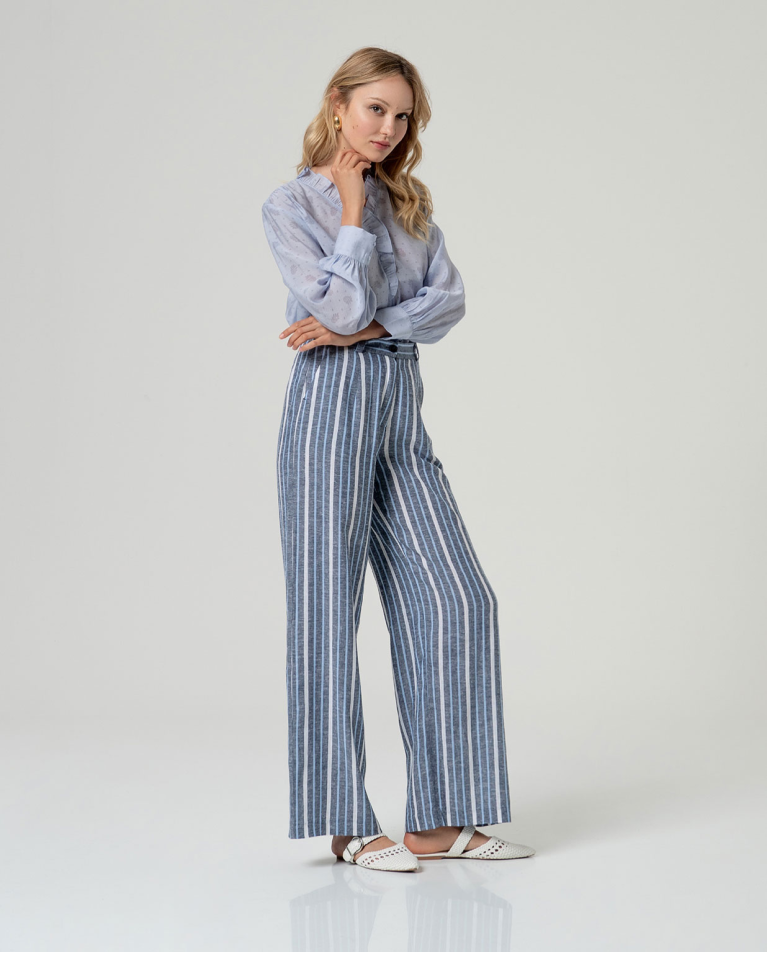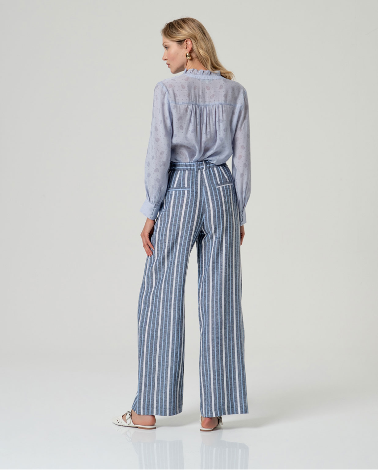 PANTALONE PALAZZO A RIGHE IN LINO E COTONE