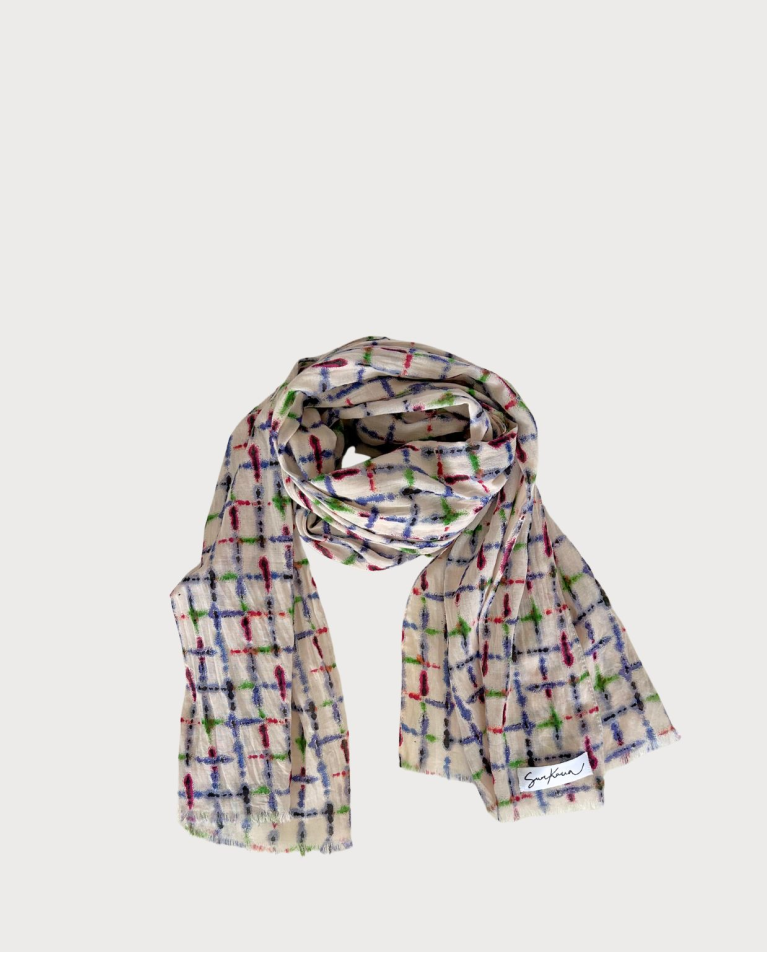 SCIARPA FANTASIA QUADRI SFRANGIATA IN COTONE