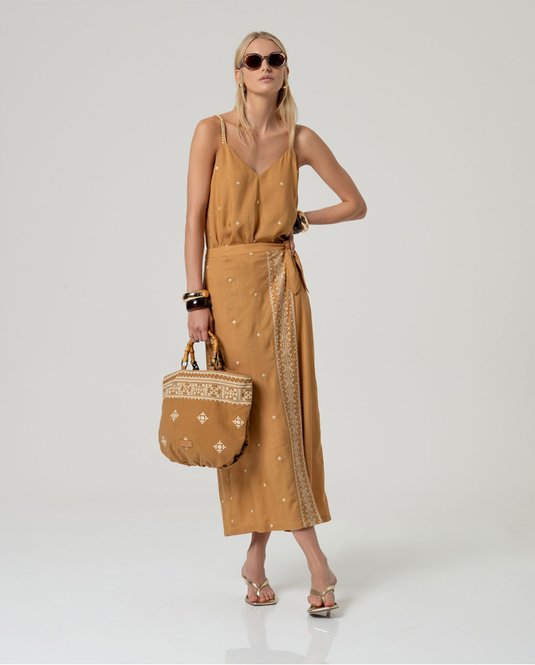 TOP GIROMANICA CON AGGRAPPATURA E DETTAGLIO GIOIELLO ORO