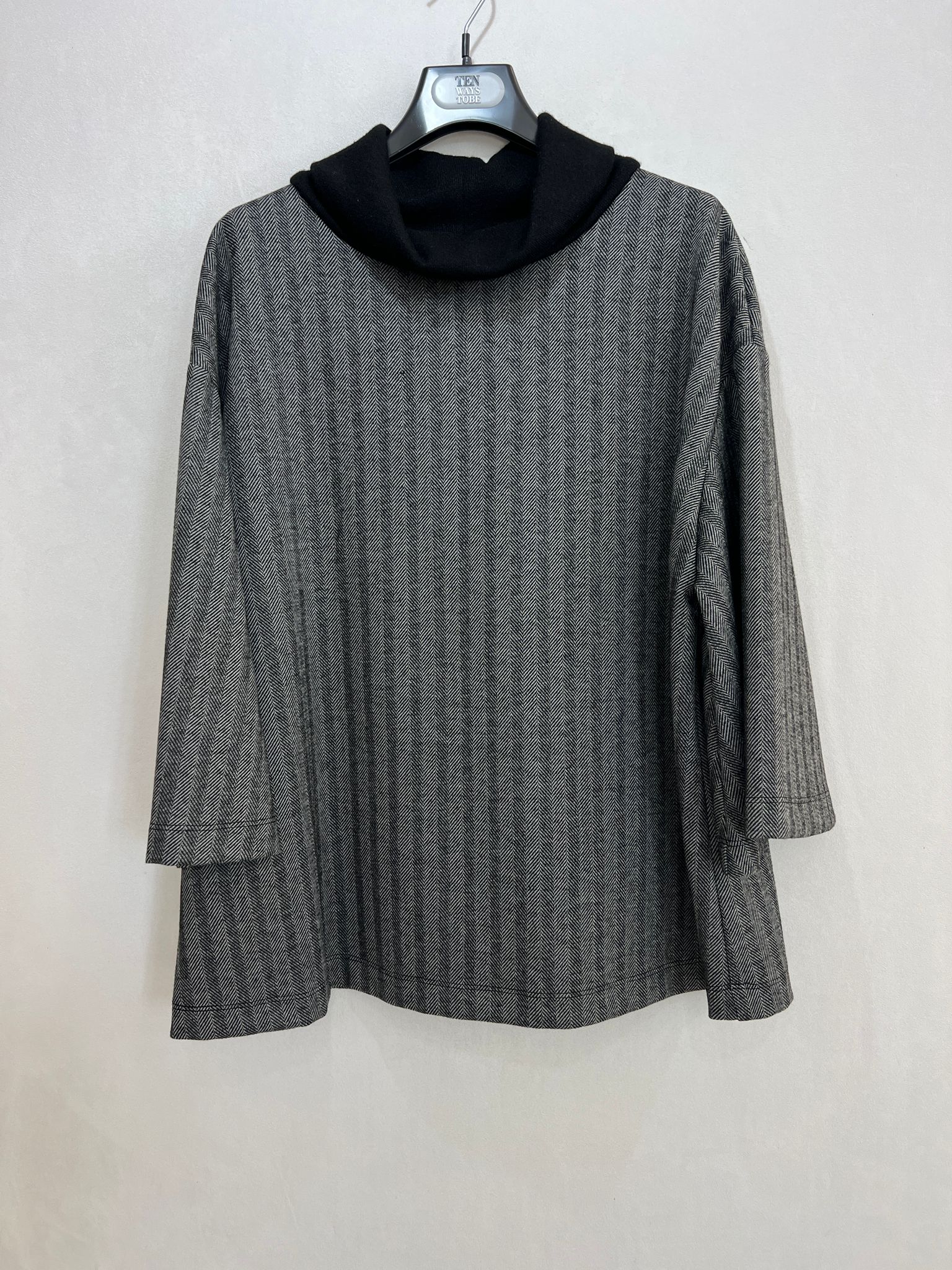 CAMICIA A RIGHE MODELLO A CAMPANA CON COLLO AD ANELLO