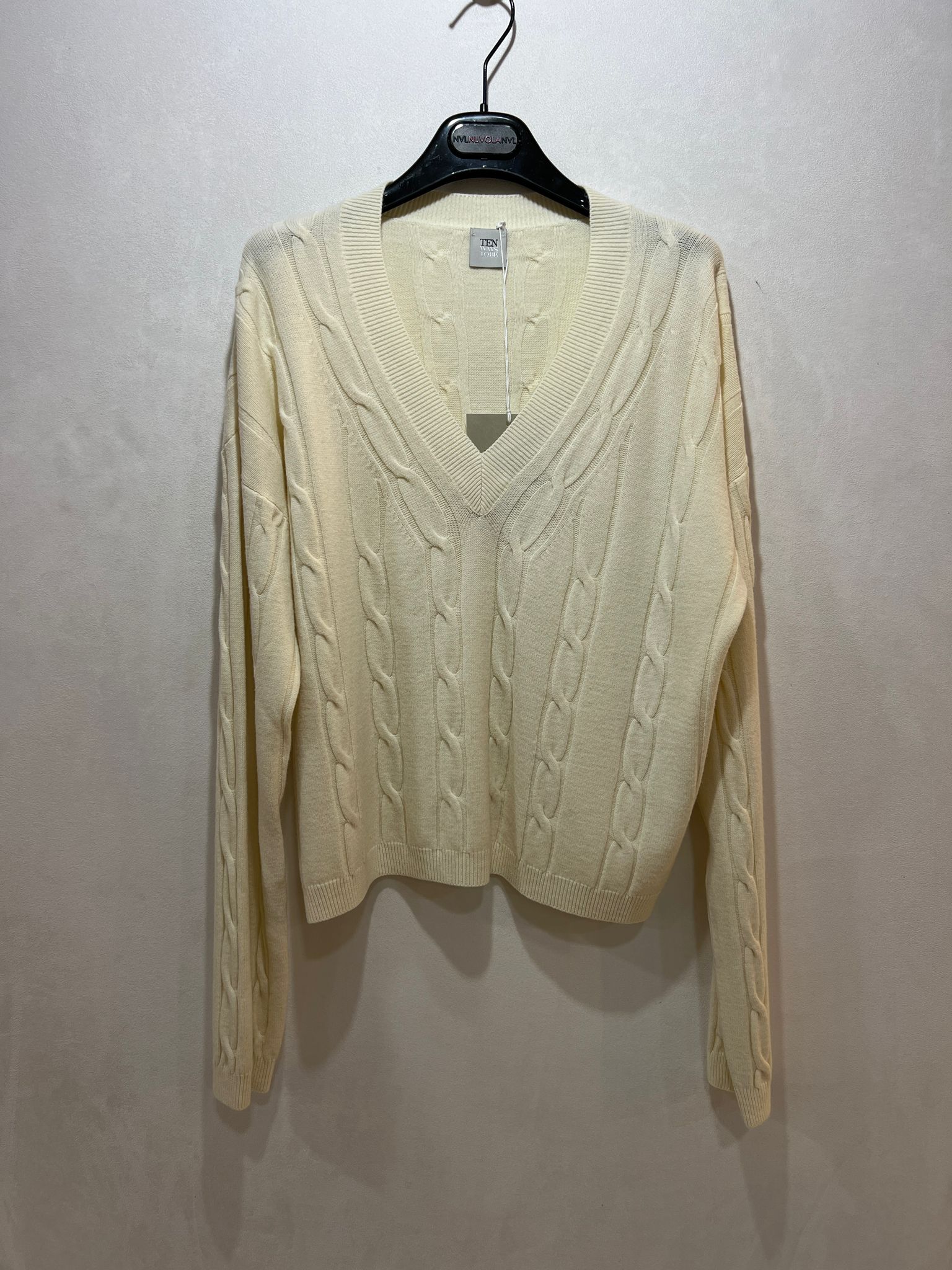 MAGLIONCINO SCOLLO A V CON TRECCE