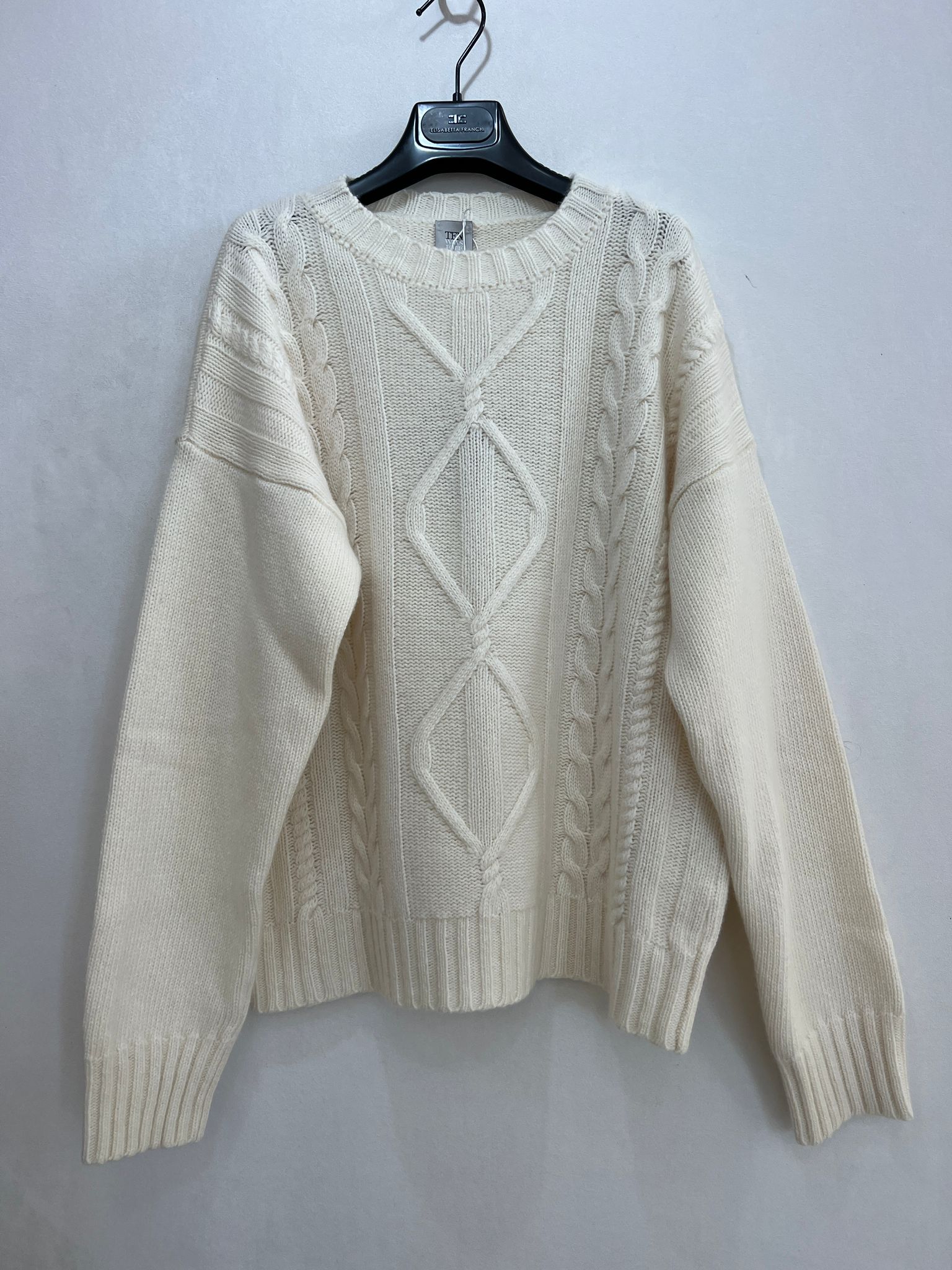 MAGLIONE AMPIO LAVORAZIONE A TRECCIA E ROMBI