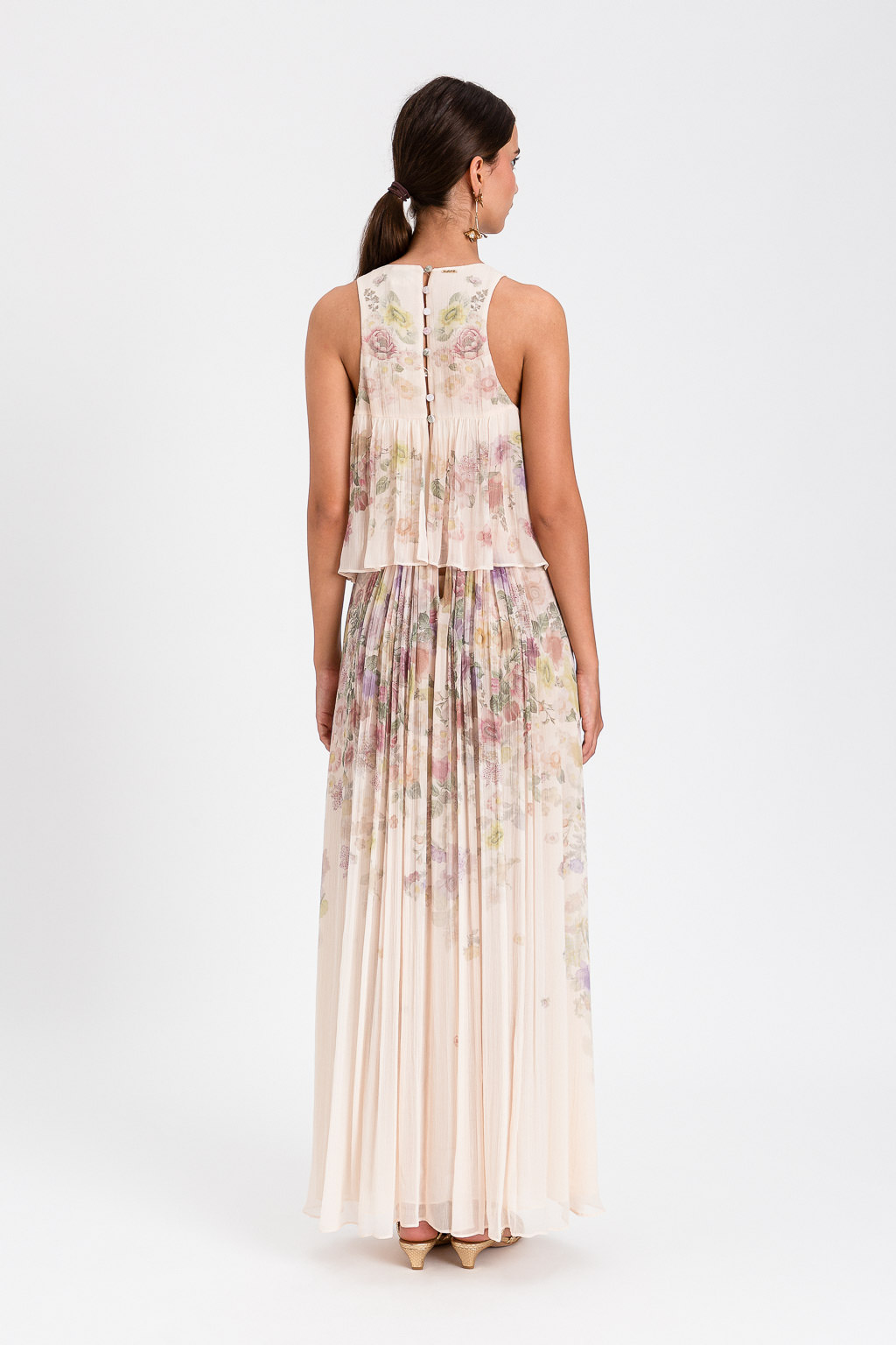ABITO LUNGO FANTASIA CON BALZE CHE DIVIDE LA SILUETTE