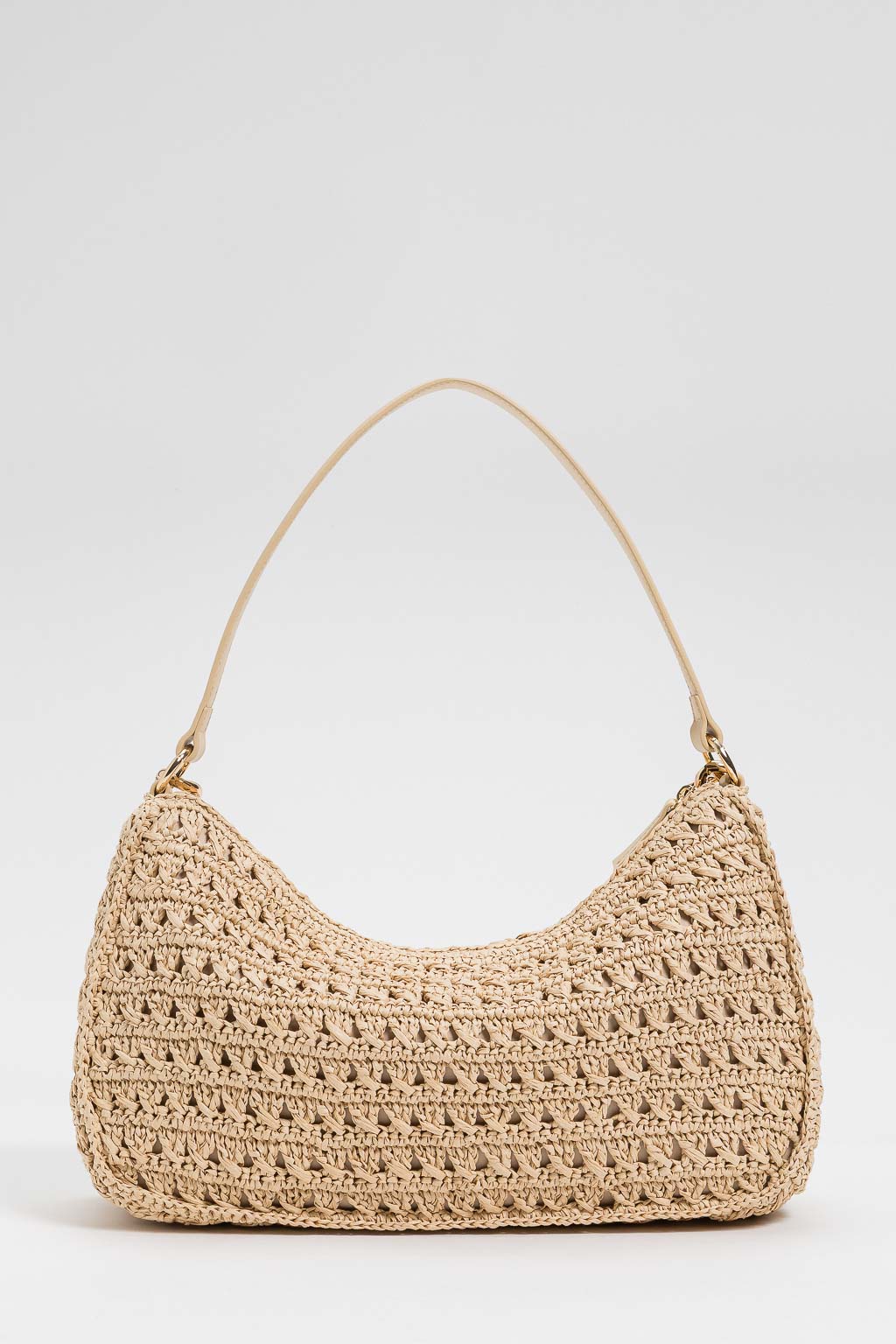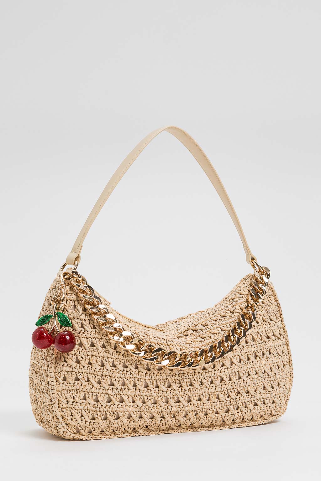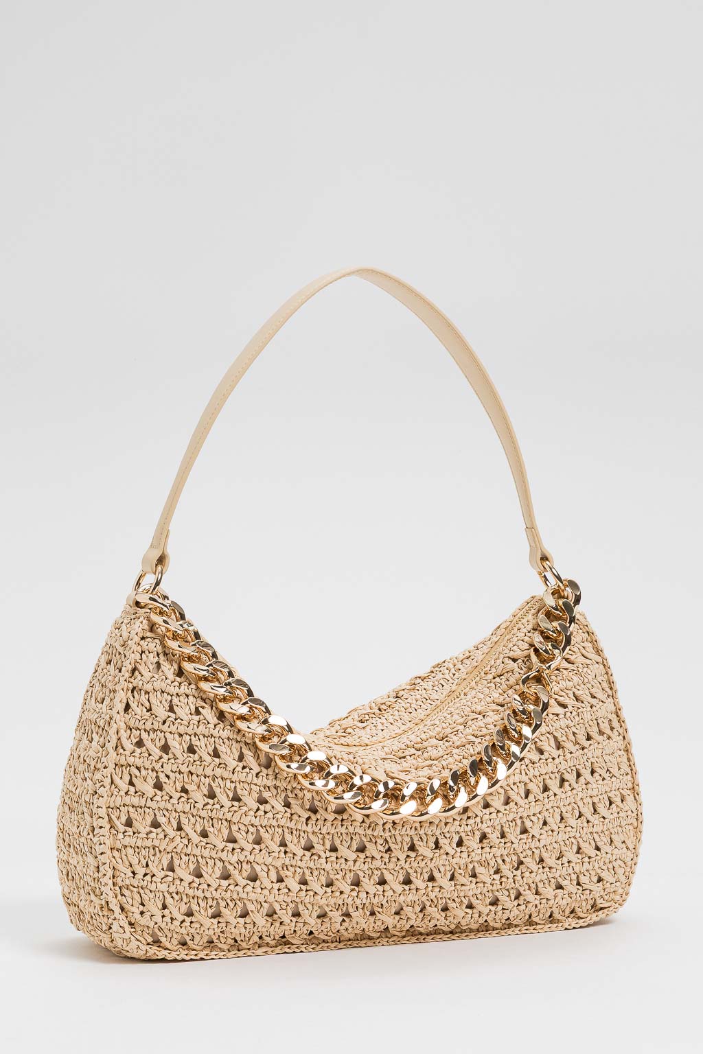 BORSA A SPALLA DI PAGLIA CON DETTAGLIO CATENA ORO