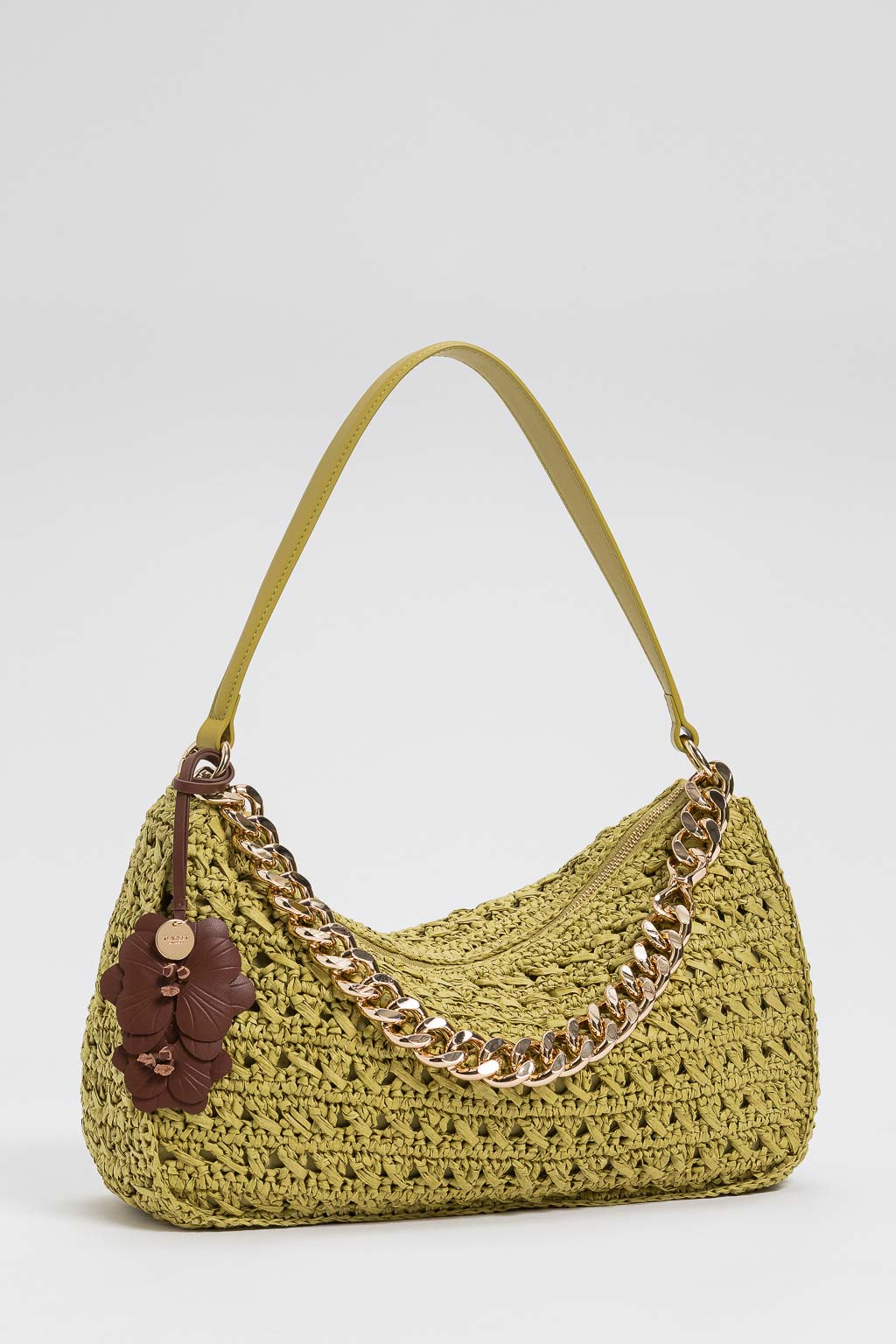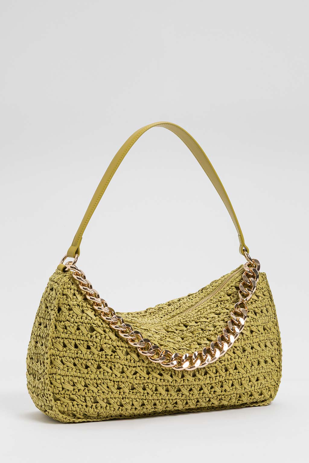 BORSA A SPALLA DI PAGLIA CON DETTAGLIO CATENA ORO
