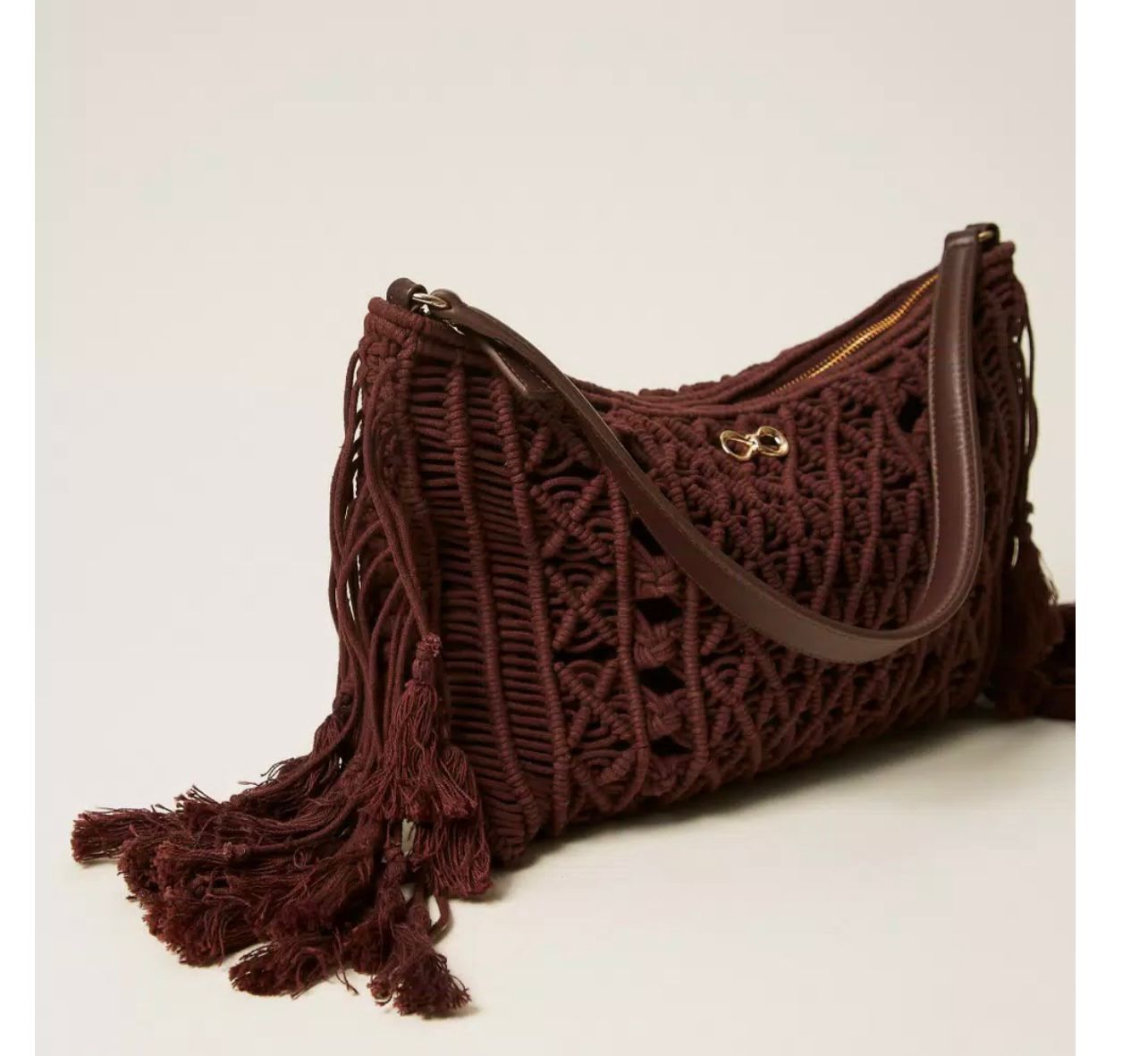 BORSA A SACCHETTO IN COTONE INTRECCIATA BICOLORE