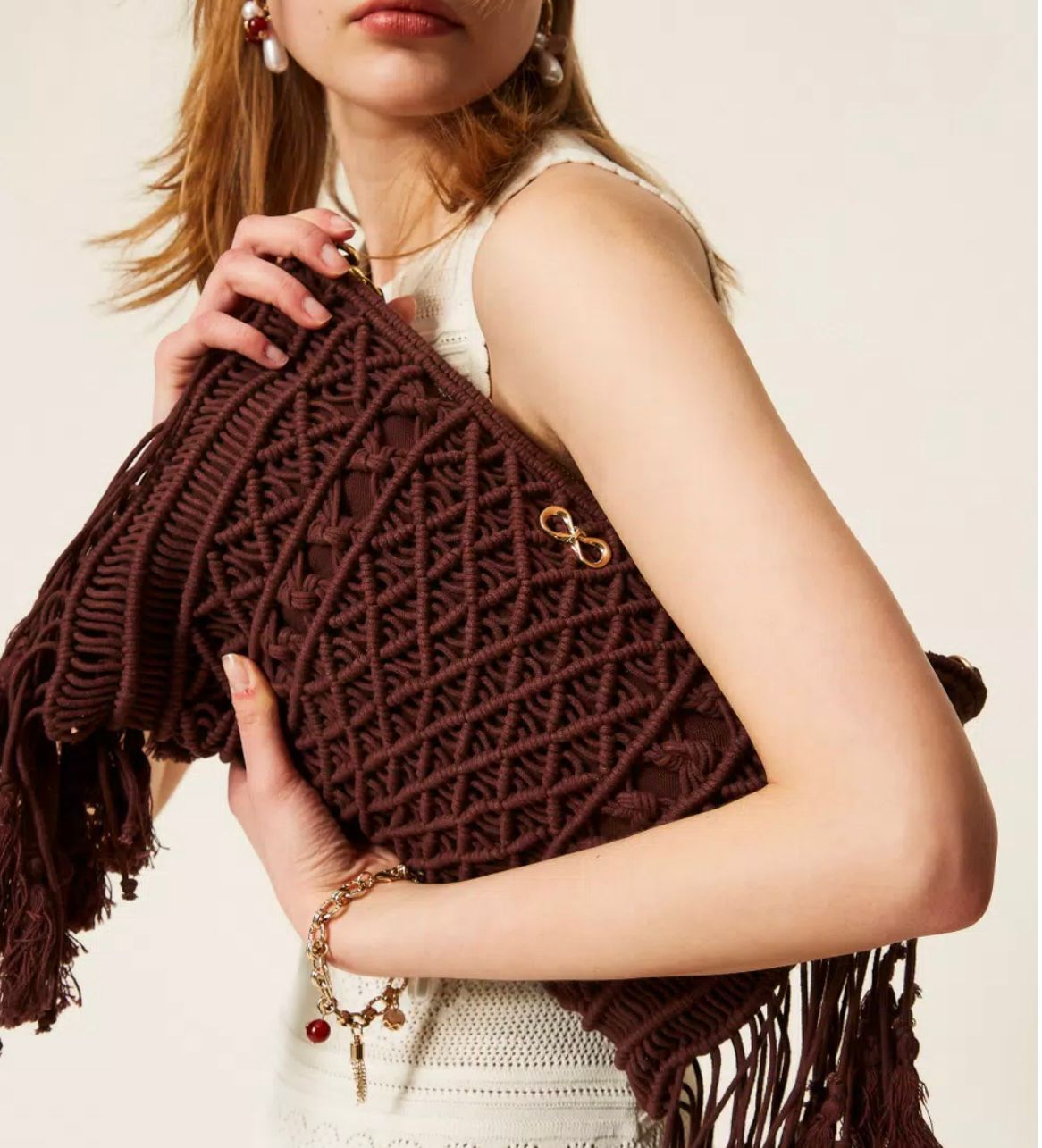 BORSA SATCHEL PICCOLA MANICI INTRECCIATI E TRACOLLA CON CHARM