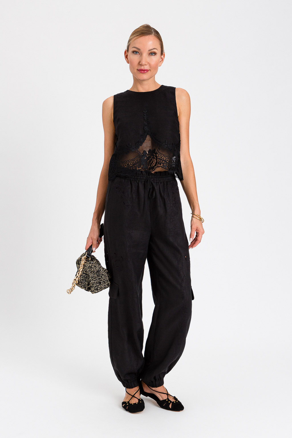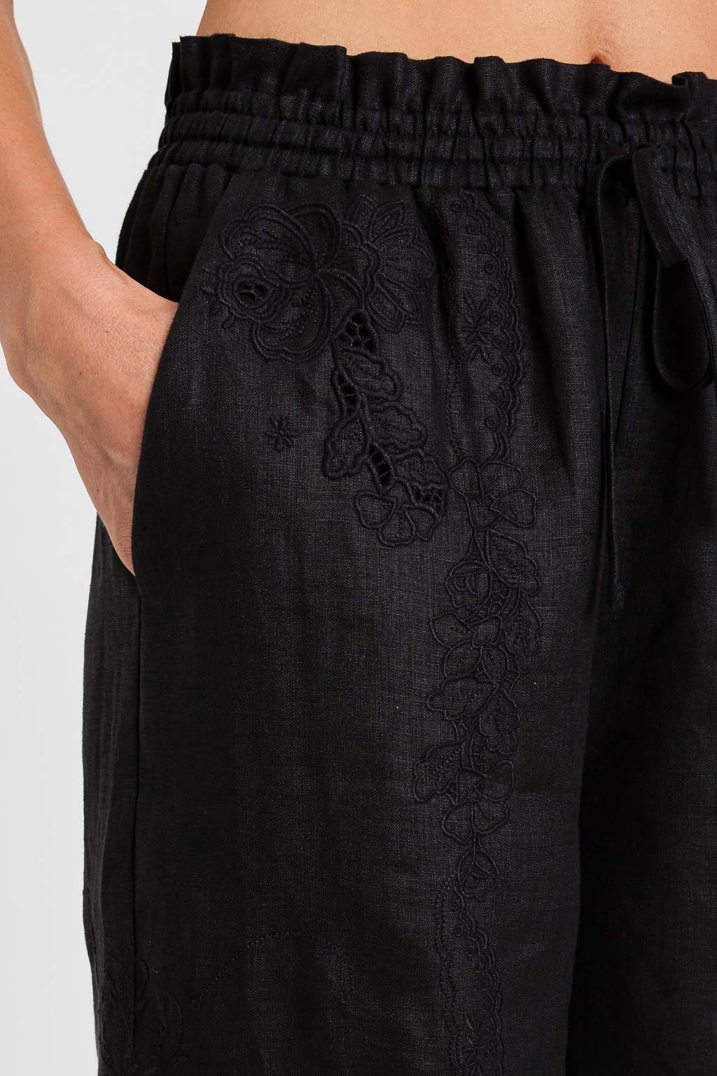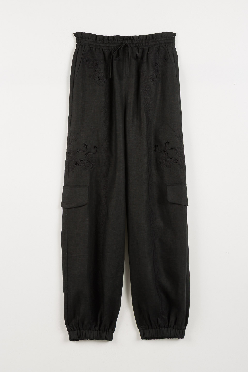 PANTALONE IN LINO TRAFORATO CON COULISSE IN VTA ED ELASTICO ALLE CAVIGLIE