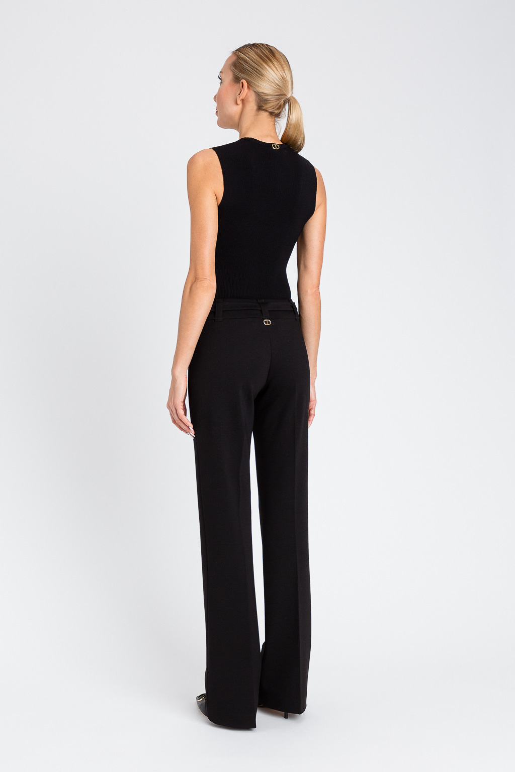 PANTALONE PALAZZO CON FIBBIA LOGO IN METALLO