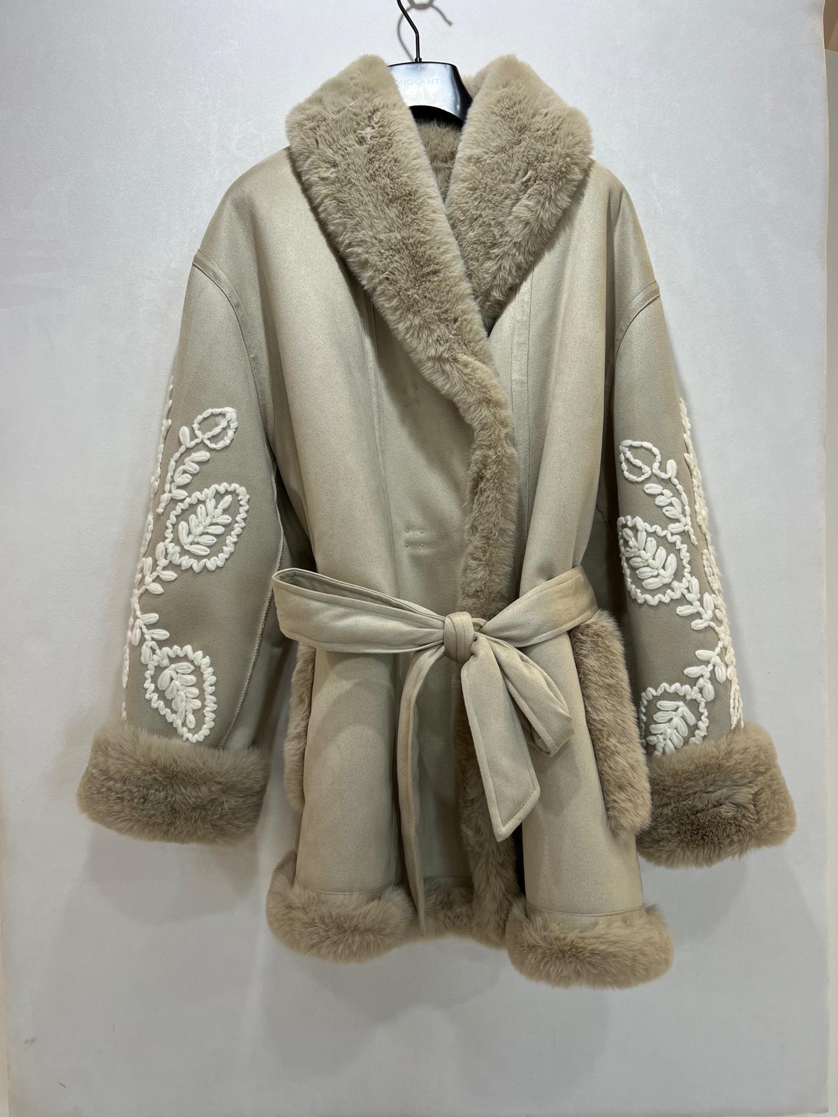 GIACCONE CON INTERNO DI ECO-PELLICCIA FUSCIACCA E RICAMO SU MANICHE