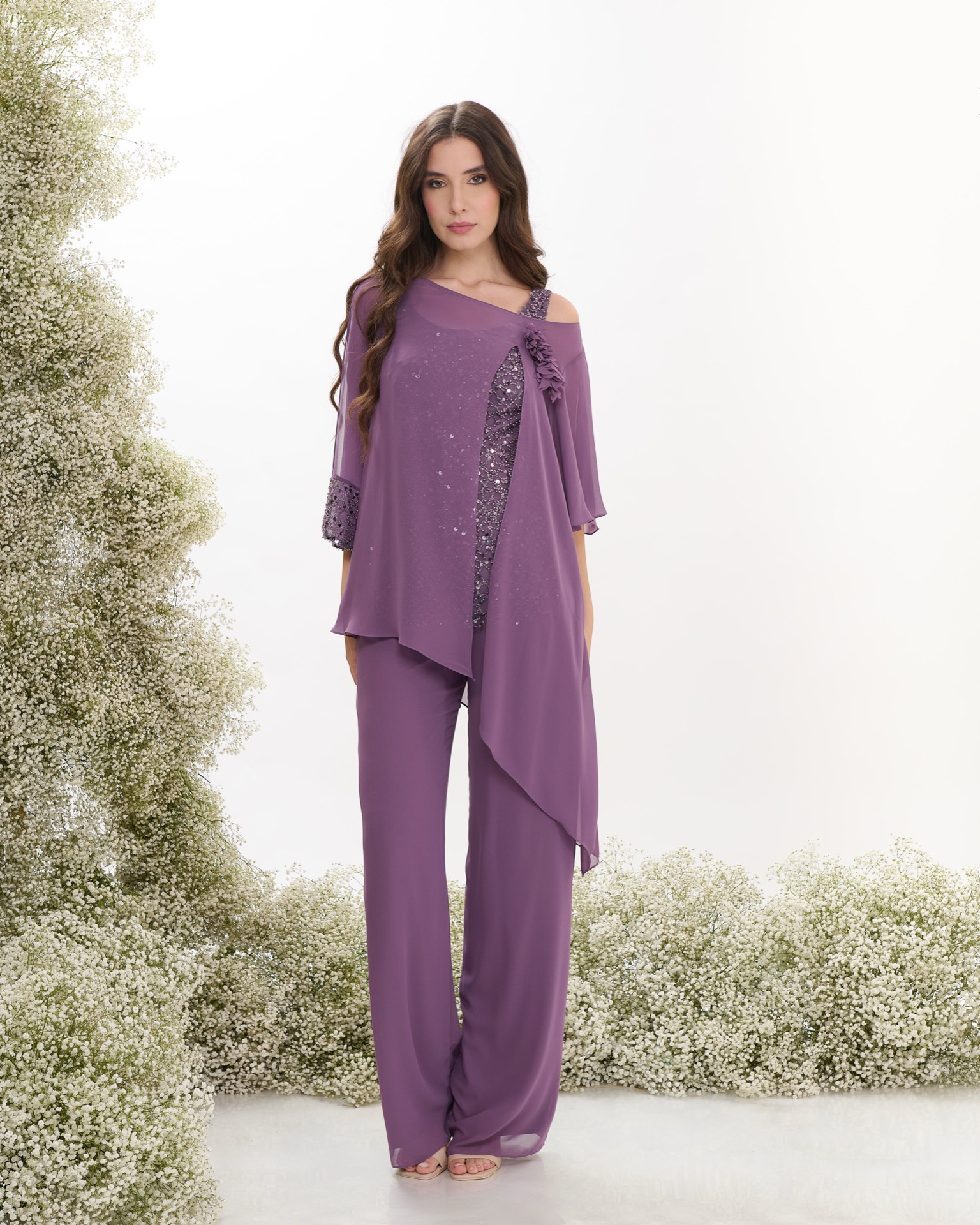 COMPLETO TOP PAILLETTES CAPPA CHIFFON E PANTALONE PALAZZO