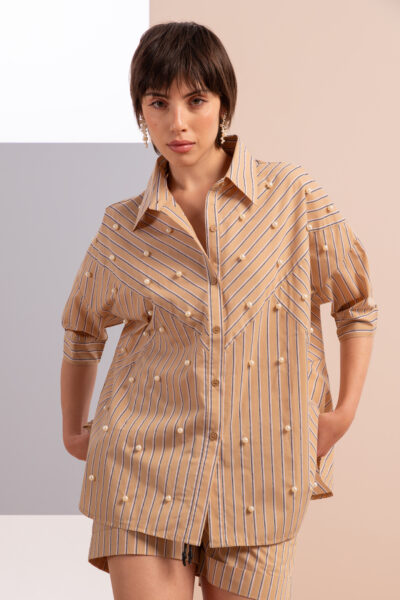 CAMICIA A RIGHE MEZZA MANICA CON PERLE