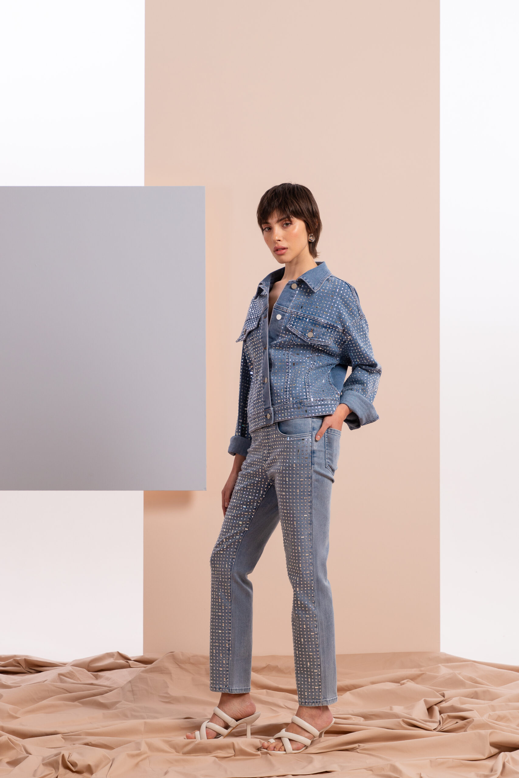 GIUBBINO DENIM CON STRASS E PIETRE
