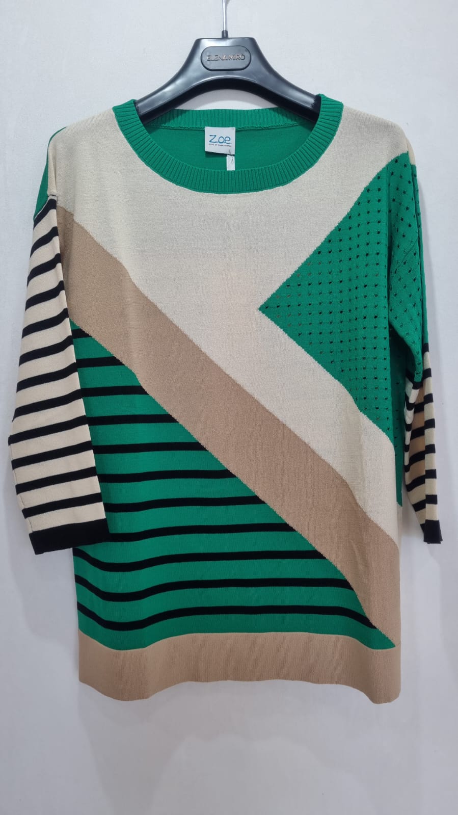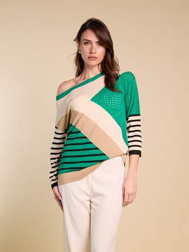 MAGLIA GIROCOLLO MANICA 3/4 CON DISEGNO GEOMETRICO