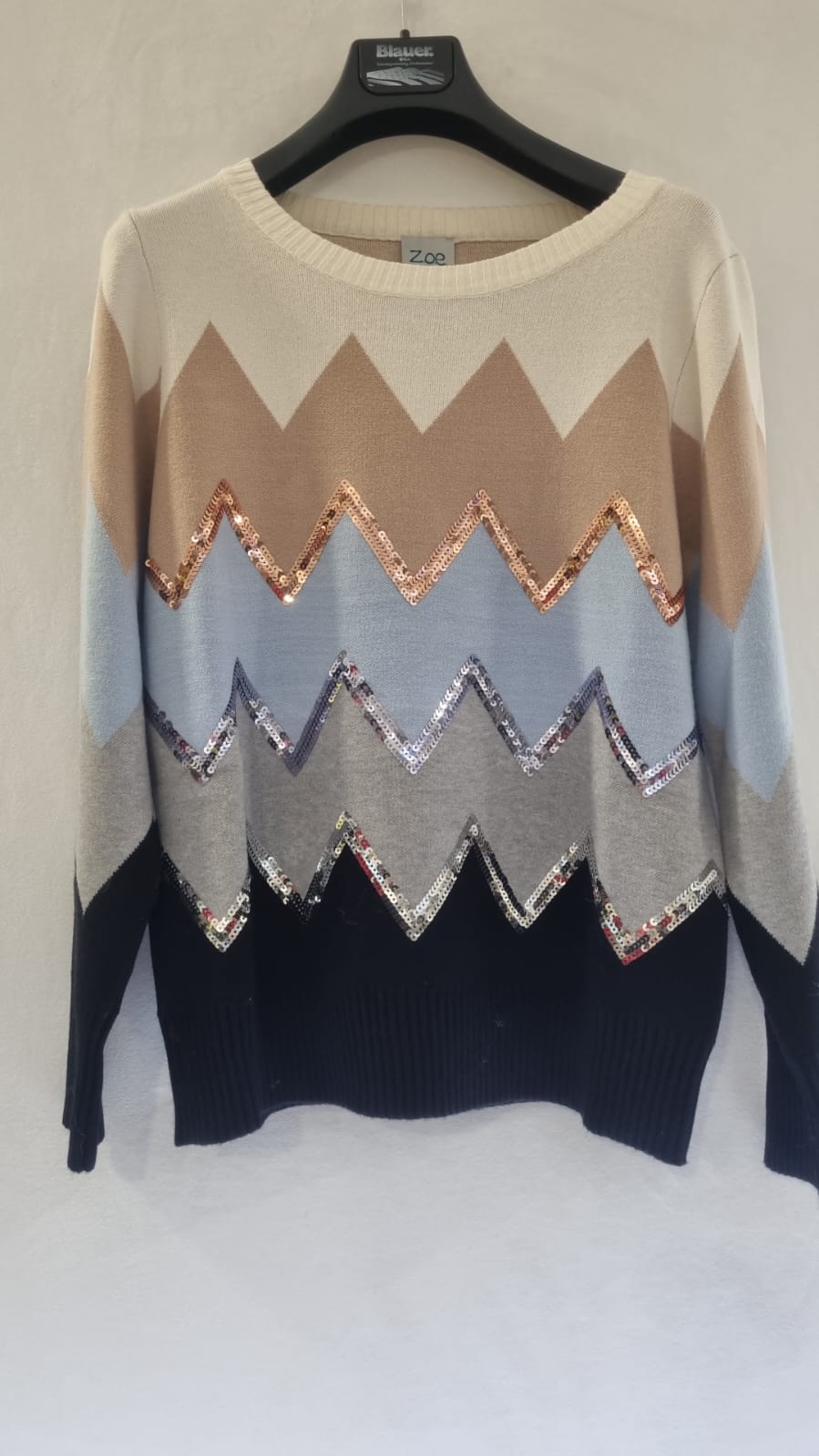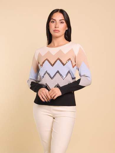 MAGLIA GIROCOLLO ZIG ZAG A FASCE DI COLORE