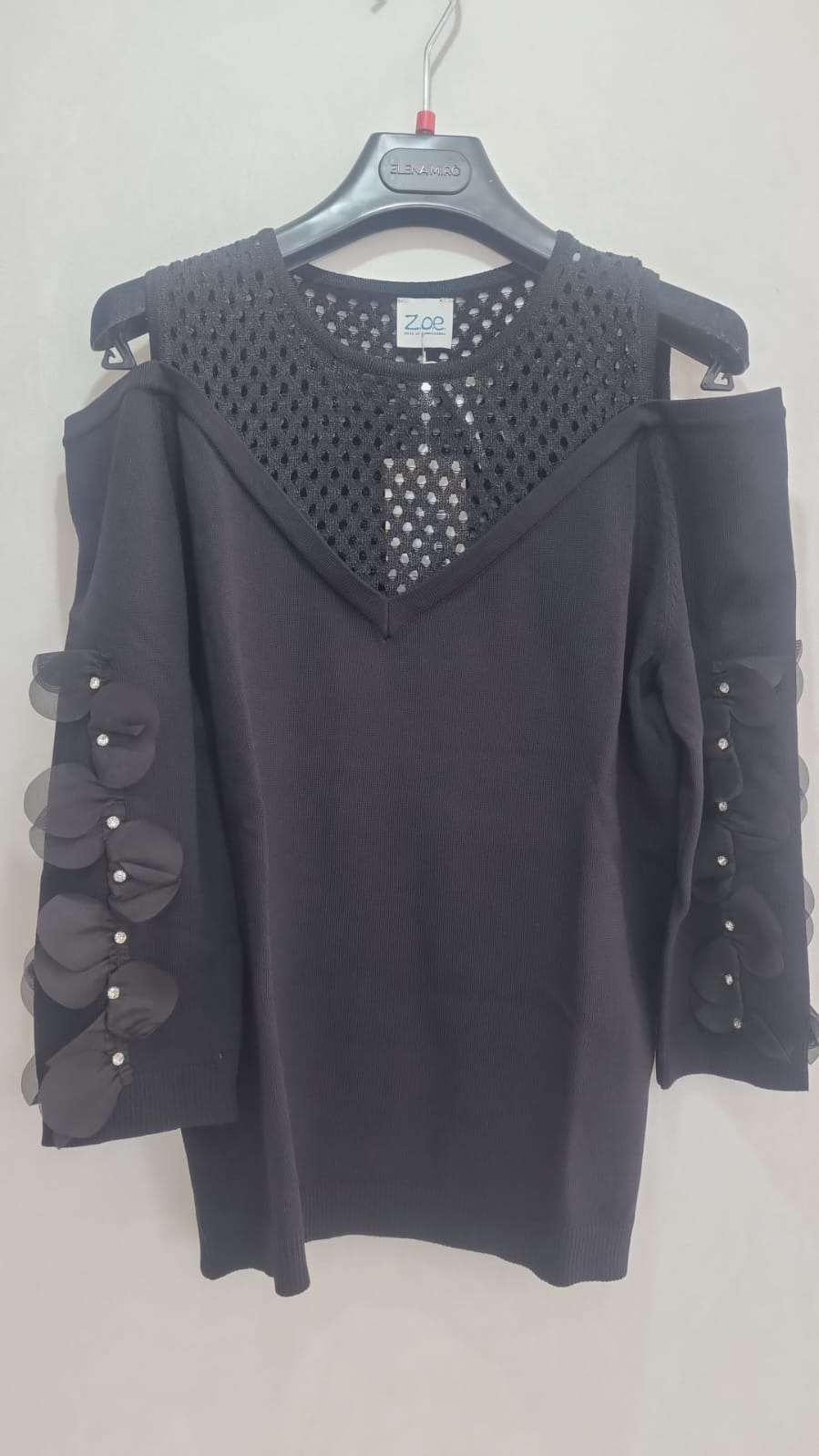 MAGLIA IN FILO CON APPLICAZIONI SU MANICHE E FORATURE
