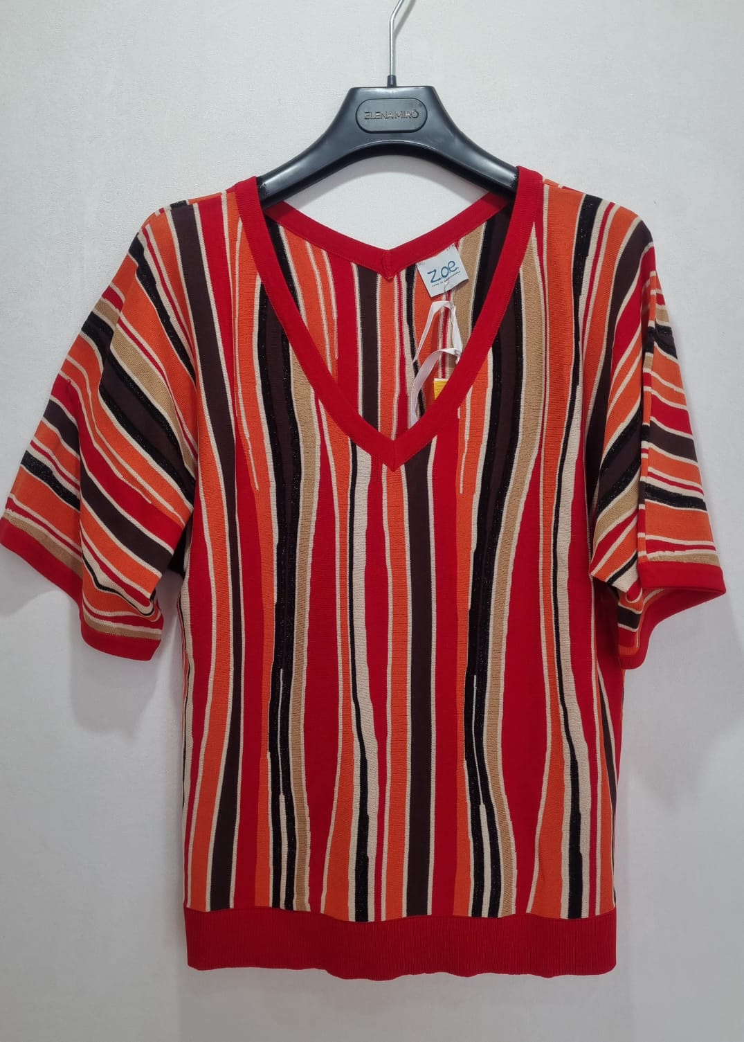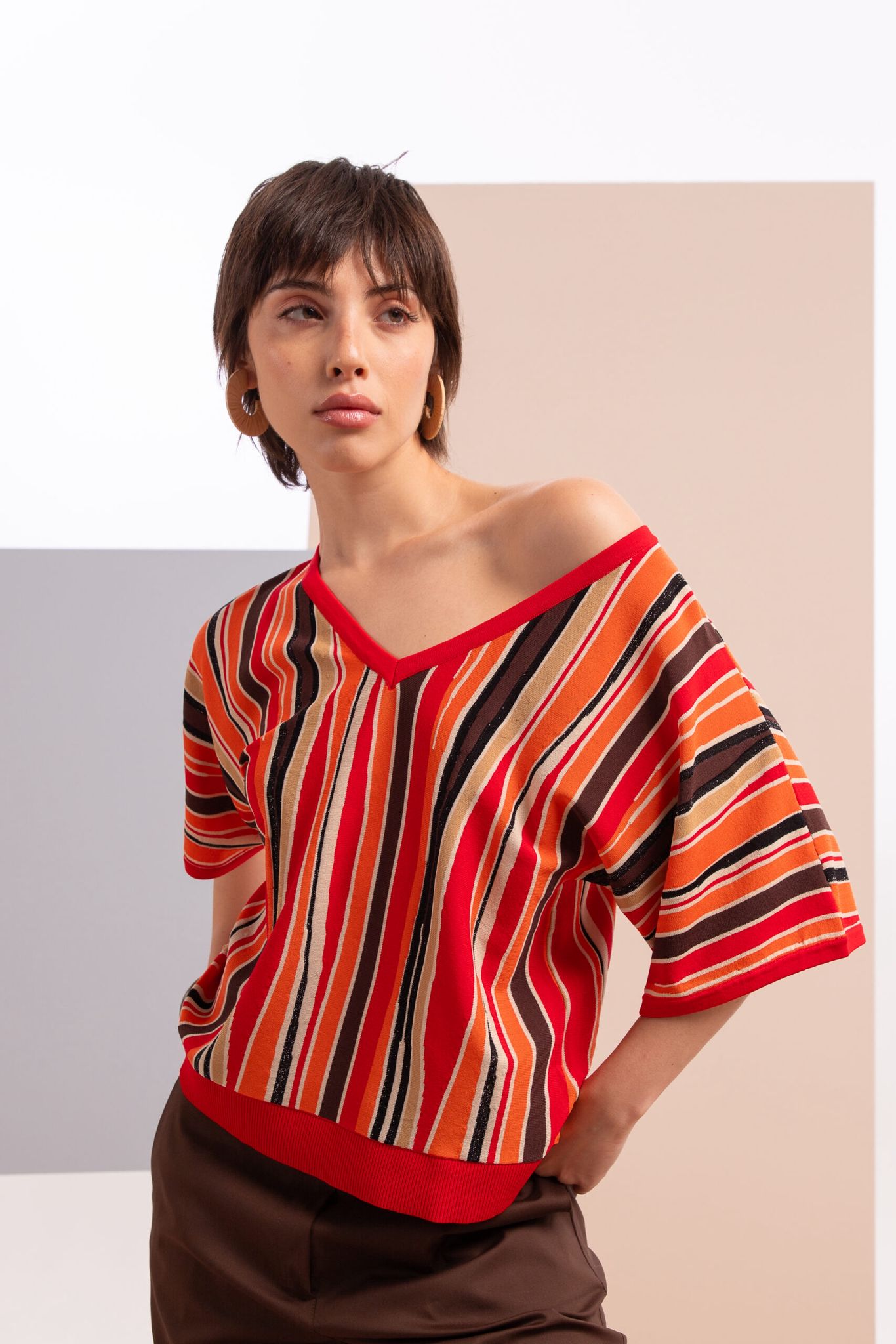 MAGLIA SCOLLO A V A RIGHE VERTICALI