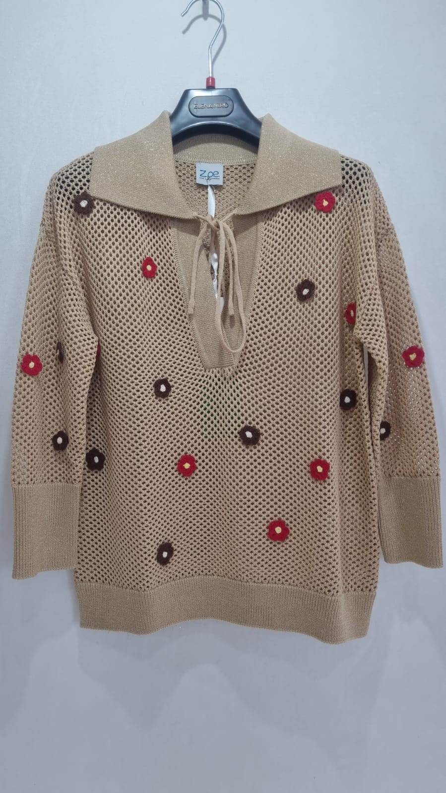 MAGLIA TRAFORATA CON COLLETTO A FIORELLINI